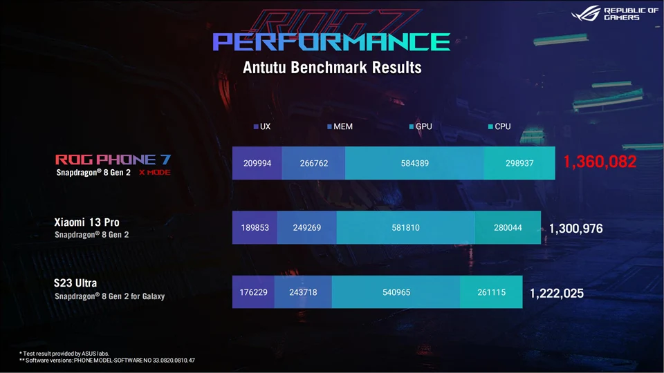 ROG Phone 7: 8GB+256GB 12GB+256GB 16GB+512GB ROG Phone 7 Pro(Ultimate): 16GB+512GB |