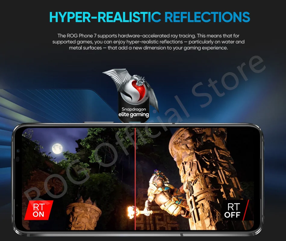 The ROG Phone 7 supports hardware-accelerated ray tracing. This means that for supported games, you can enjoy hyper-realistic reflections — particularly on water and metal surfaces — that add a new dimension to your gaming experience.