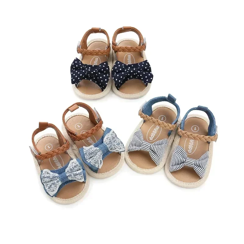 2023 Summer Newborn Infant Baby Girls Princess Bowknot Shoes Soft Sole PU Cute Flats Sandals Shoes Fit For 0-18M Crib Shoes