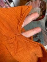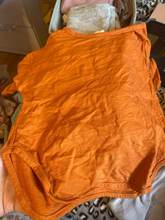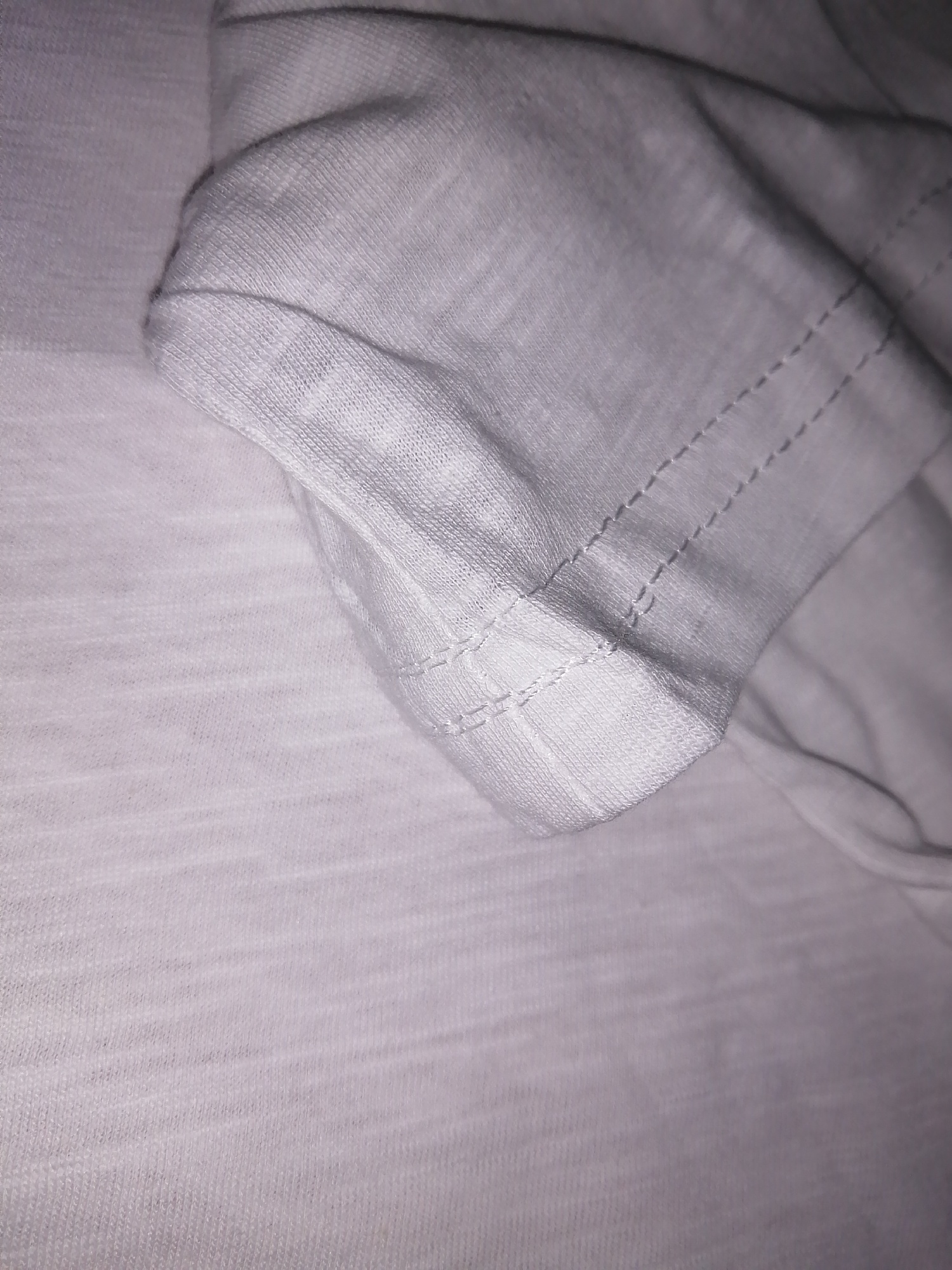 This is already the 3rd T-shirt. I like that it's cotton, not thick. T-shirts orange and purple seem to me more dense than white. Interesting cut on the bottom. Looks even crumpled)