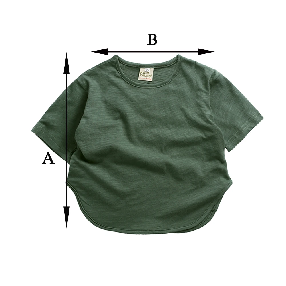 2024 Children Summer Outfits T-shirt Clothes Solid Cotton Breathable Short Sleeve Teens Top For 2-7T Toddler Kids Korean Style