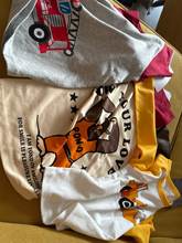Arrived in 2 days!! Very good quality shirts for autumn and spring!! Very happy and the kids love it! Take one size bigger, fabric non stretchy