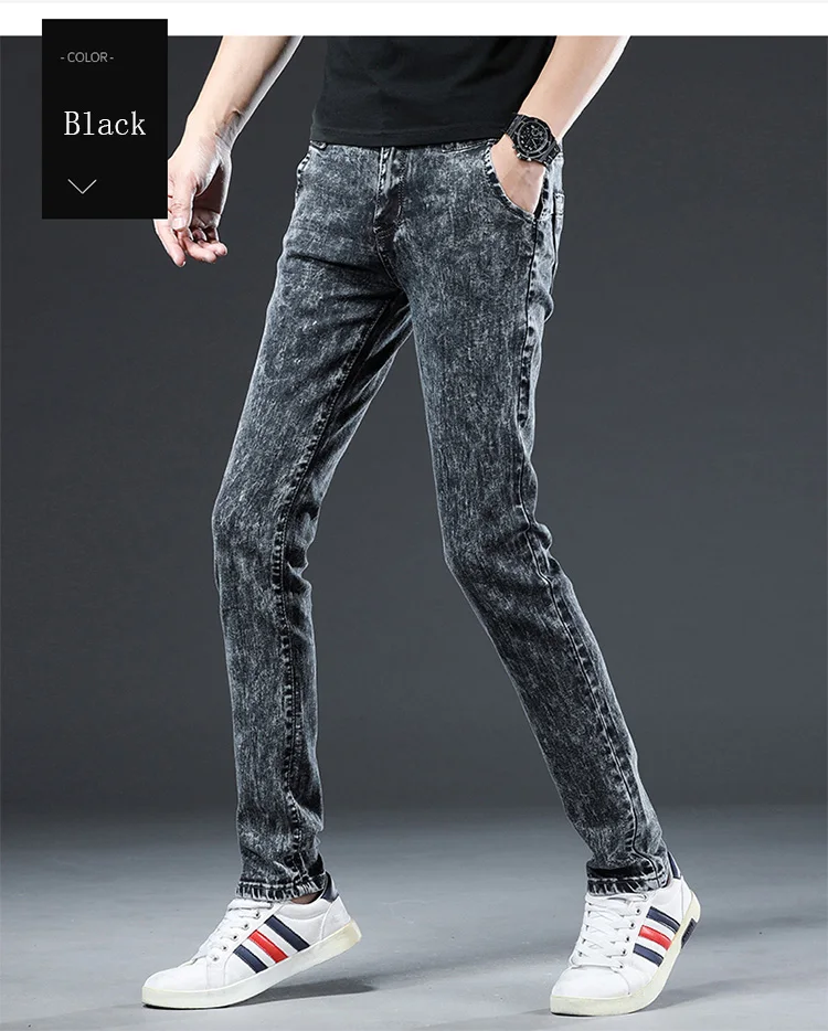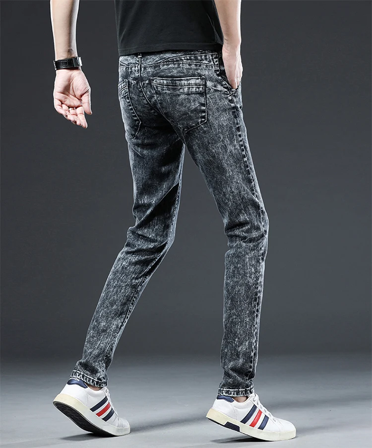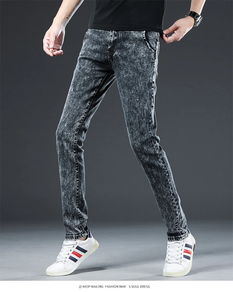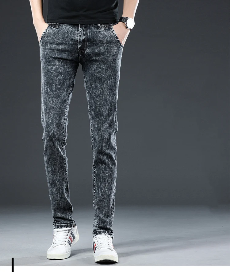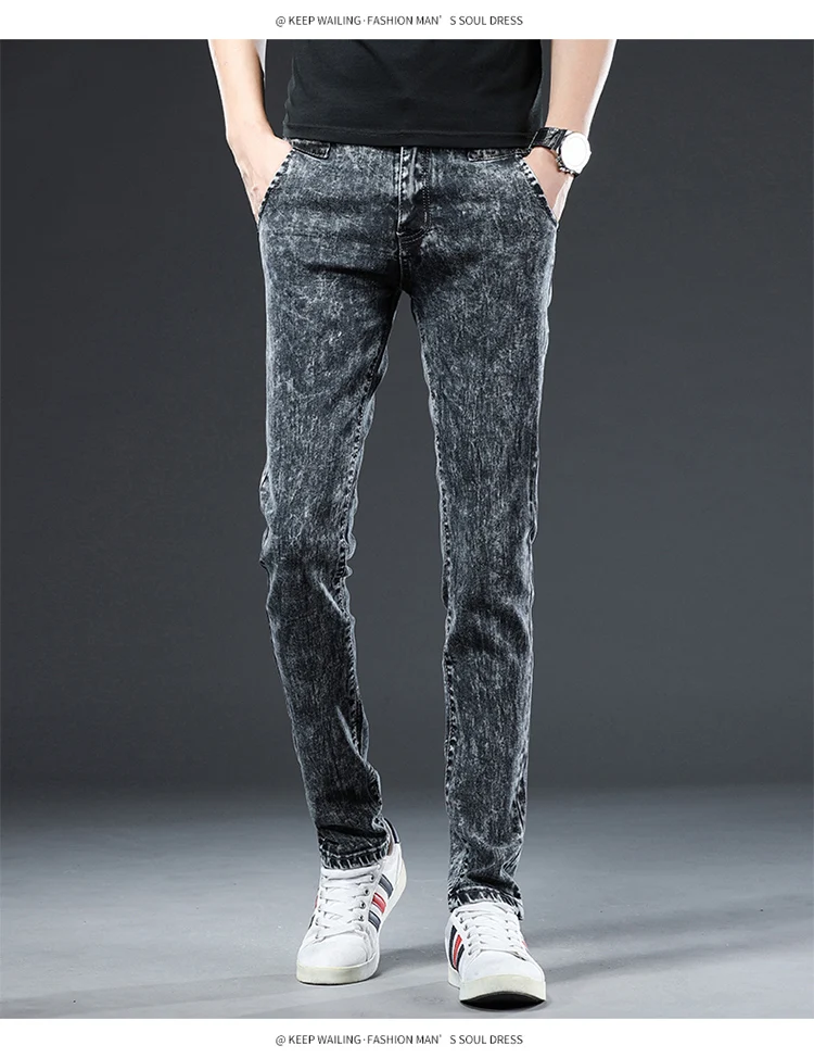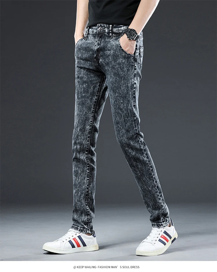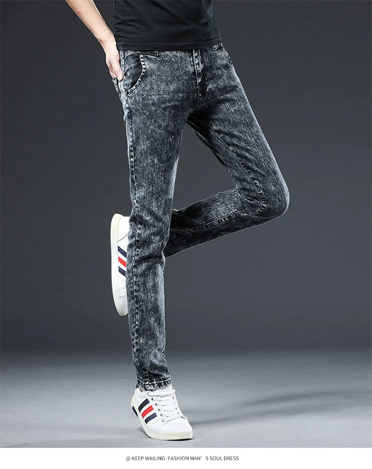 2024 Classic Korean Fashion Street Trendy Men Skinny Retro Snowflake Design Slim Fit Denim Pants New Elastic Cotton Men Jeans