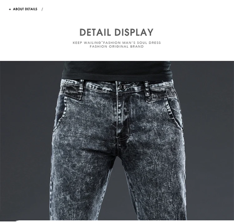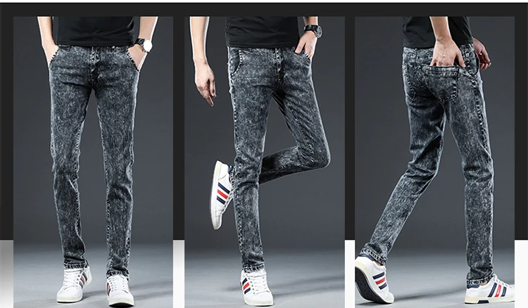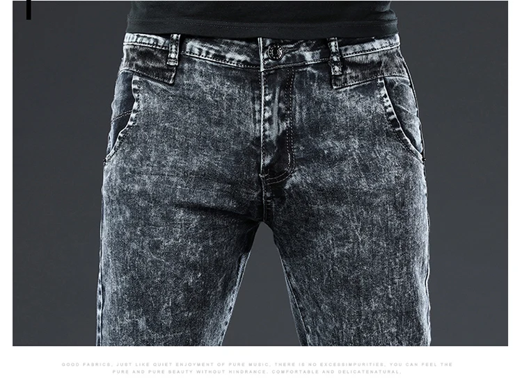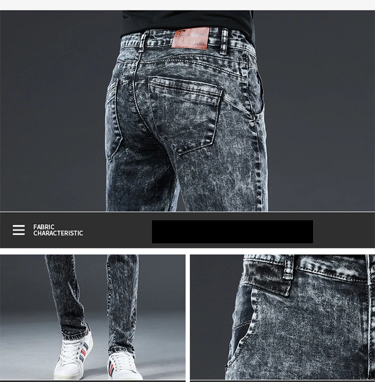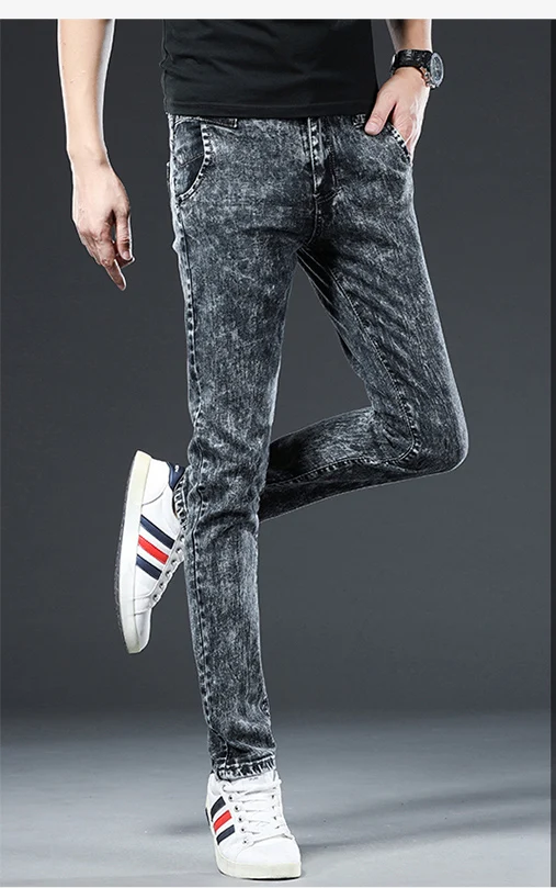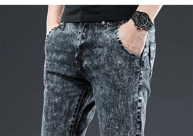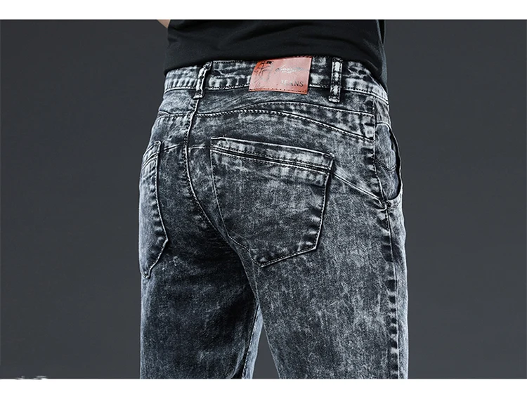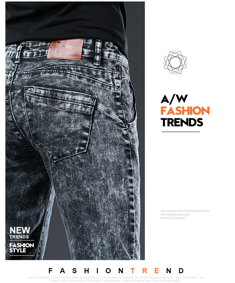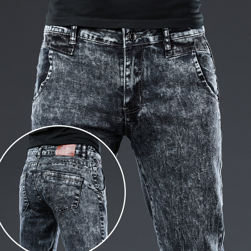 2024 Classic Korean Fashion Street Trendy Men Skinny Retro Snowflake Design Slim Fit Denim Pants New Elastic Cotton Men Jeans