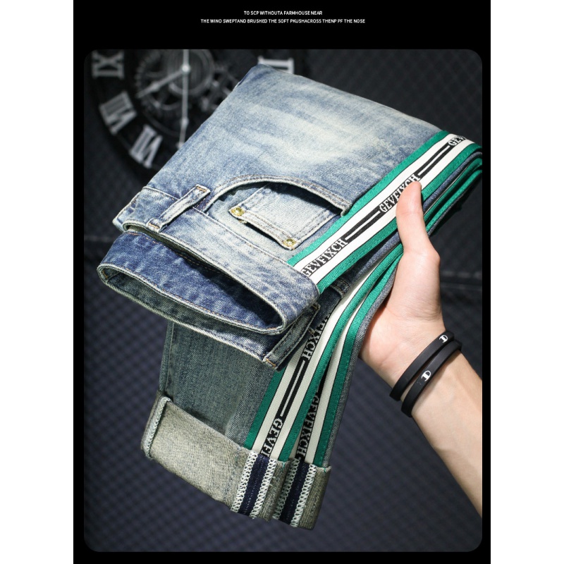 2024 Classic Korean Fashion Street Trendy Men Skinny Retro Snowflake Design Slim Fit Denim Pants New Elastic Cotton Men Jeans