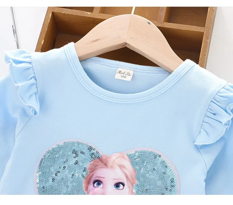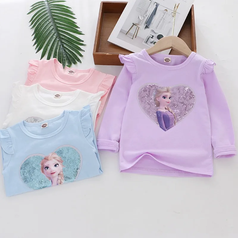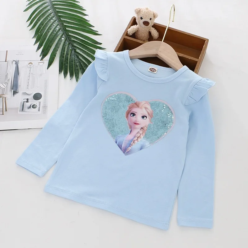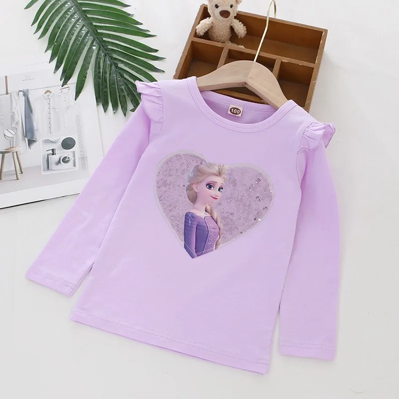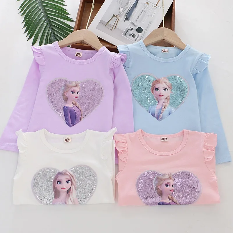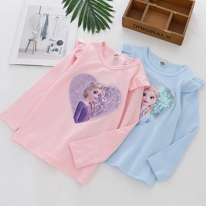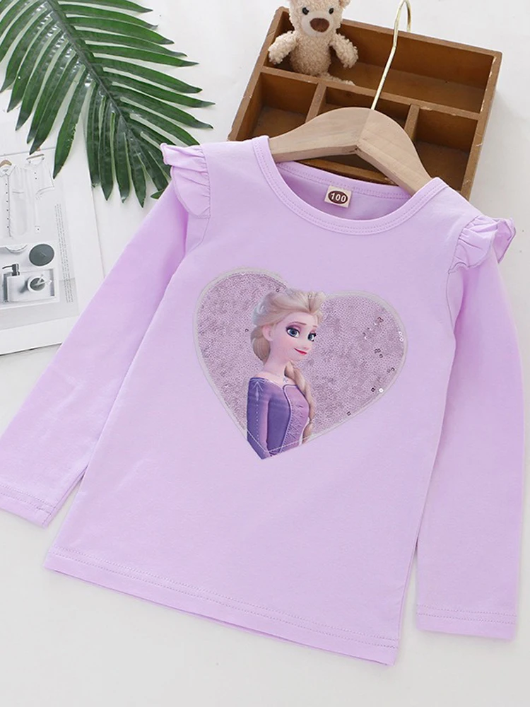 2024 Disney Tee Shirt Quality Cotton Girl Tops for Children T-shirt Girls Long Sleeve Kids Tops Frozen Elsa Anna Clothes 2-8Y