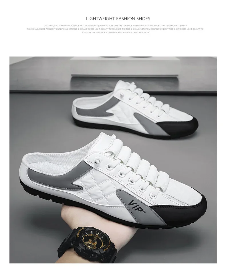 2024 Fashion men New Style lat-soled Wild Flat-bottomed Summer Thin Section Baotou Half Slippers