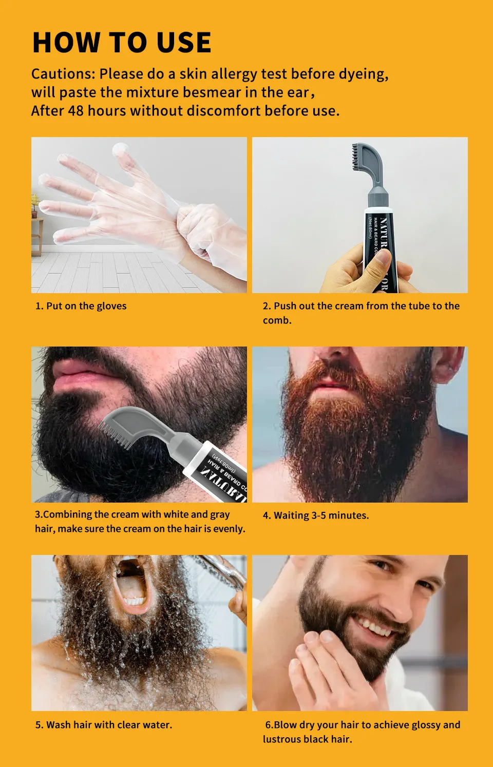2024 Herbal Extract Black Beard cream With Comb rosemary Fast Black Beard Dye Shampoo instant hair dye cream Beard care For Men