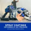 - Supports up to 75 ft of paint hose to reach peaks or second stories without diminishing performance
