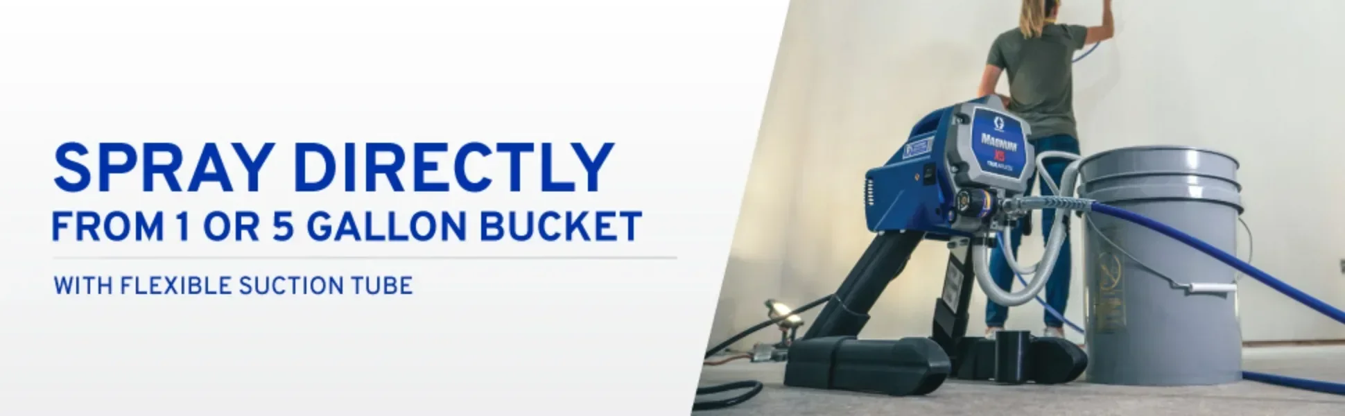 - Flexible Suction Tube allows you to spray directly from a 1 or 5-gallon paint bucket