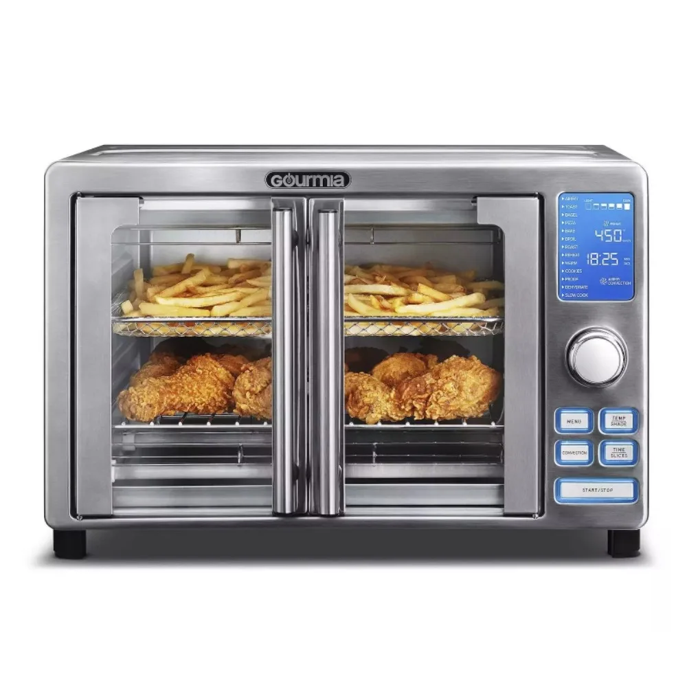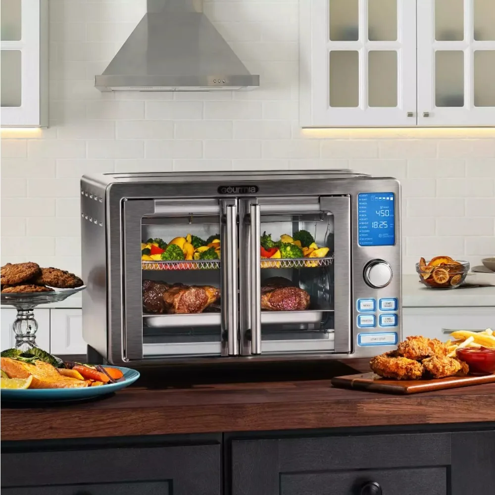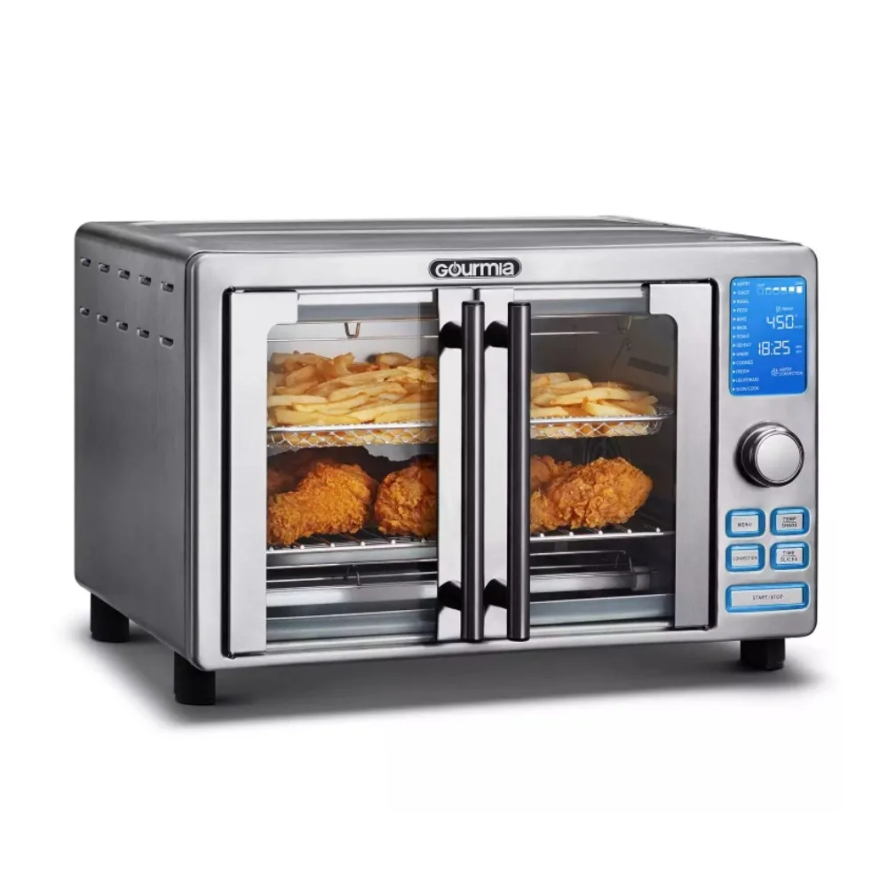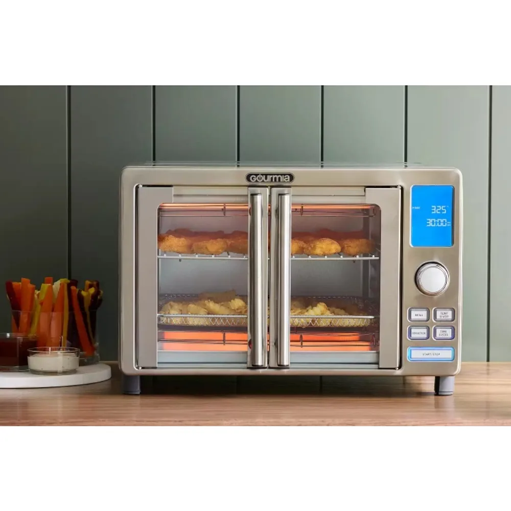 French Door Digital Air Fryer Oven accommodates 6 slices of bread, a full 12-in. pizza and even an entire chicken, and with 14 cooking presets, there’s no need for guesswork when you pop your favorites into the oven.