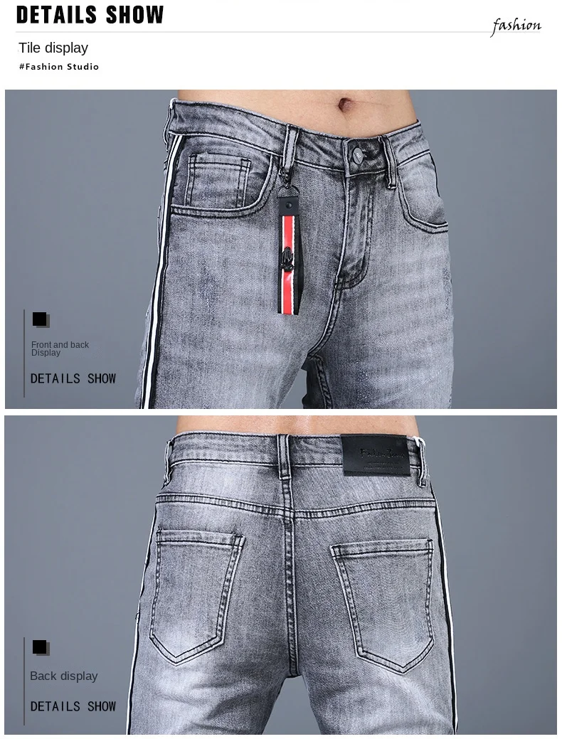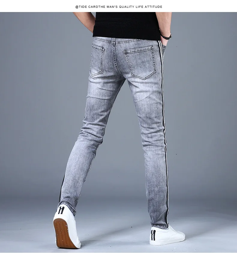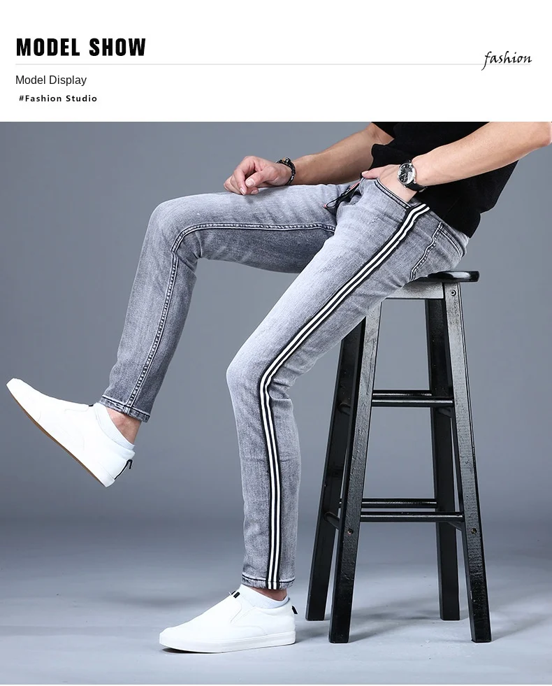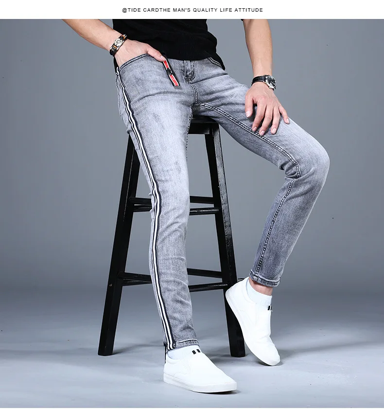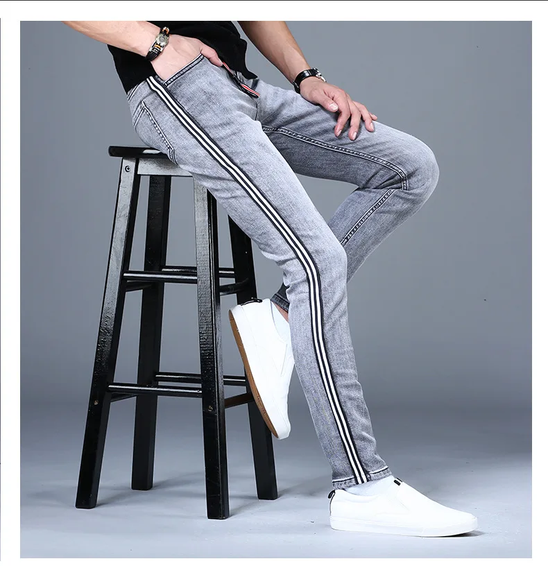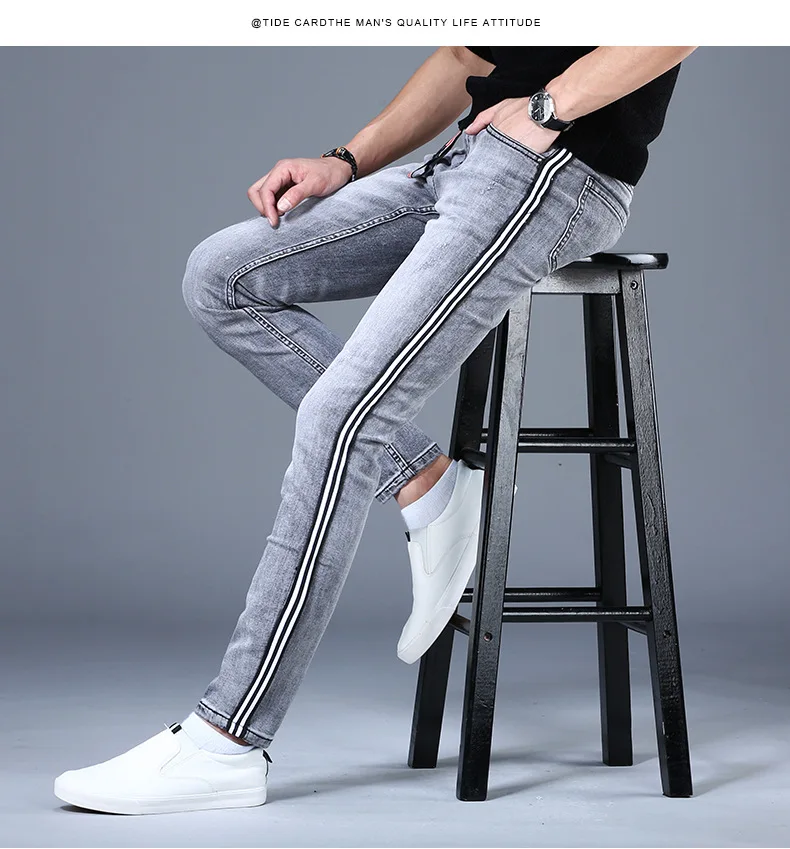 2024 New High-End Striped Jeans Men’s Fashion Korean Style Fashionable Stretch Soft Slim Fit Skinny Casual Versatile Trousers