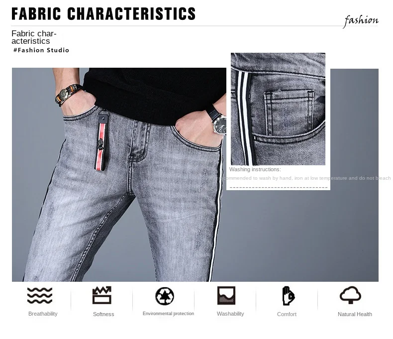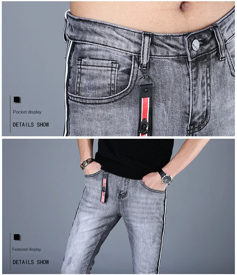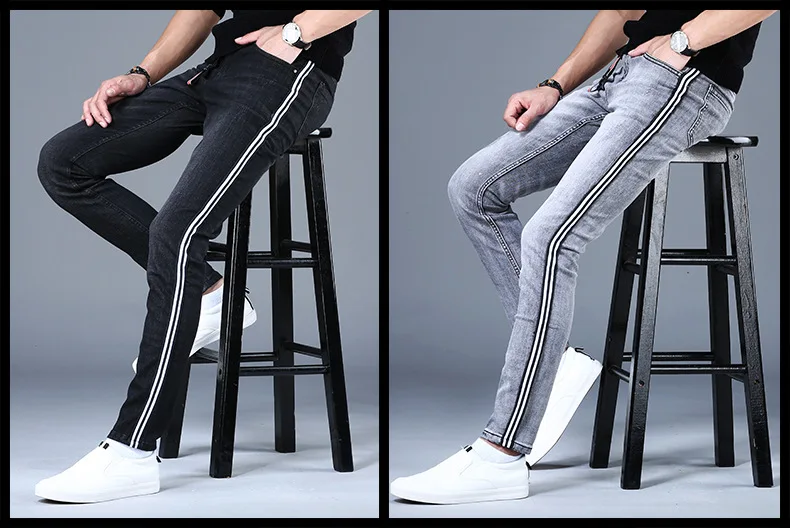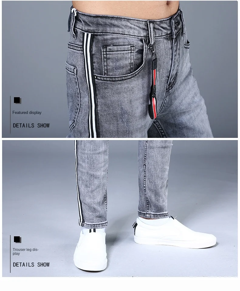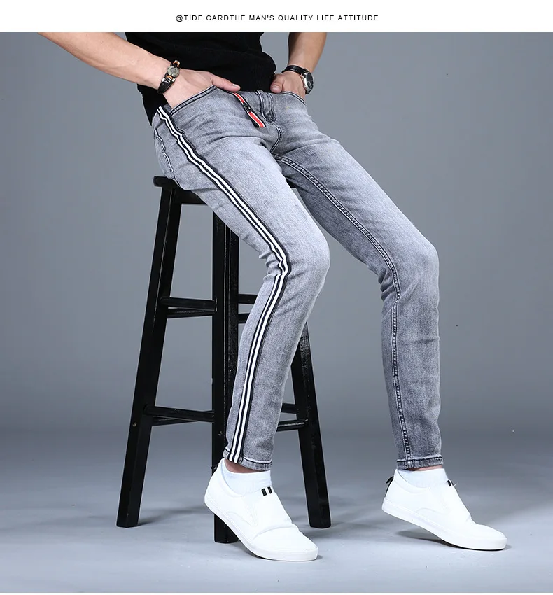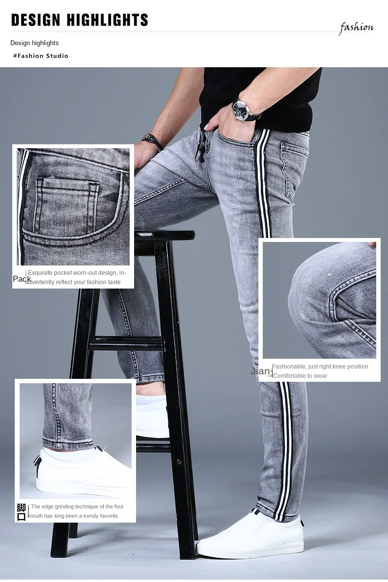 2024 New High-End Striped Jeans Men’s Fashion Korean Style Fashionable Stretch Soft Slim Fit Skinny Casual Versatile Trousers