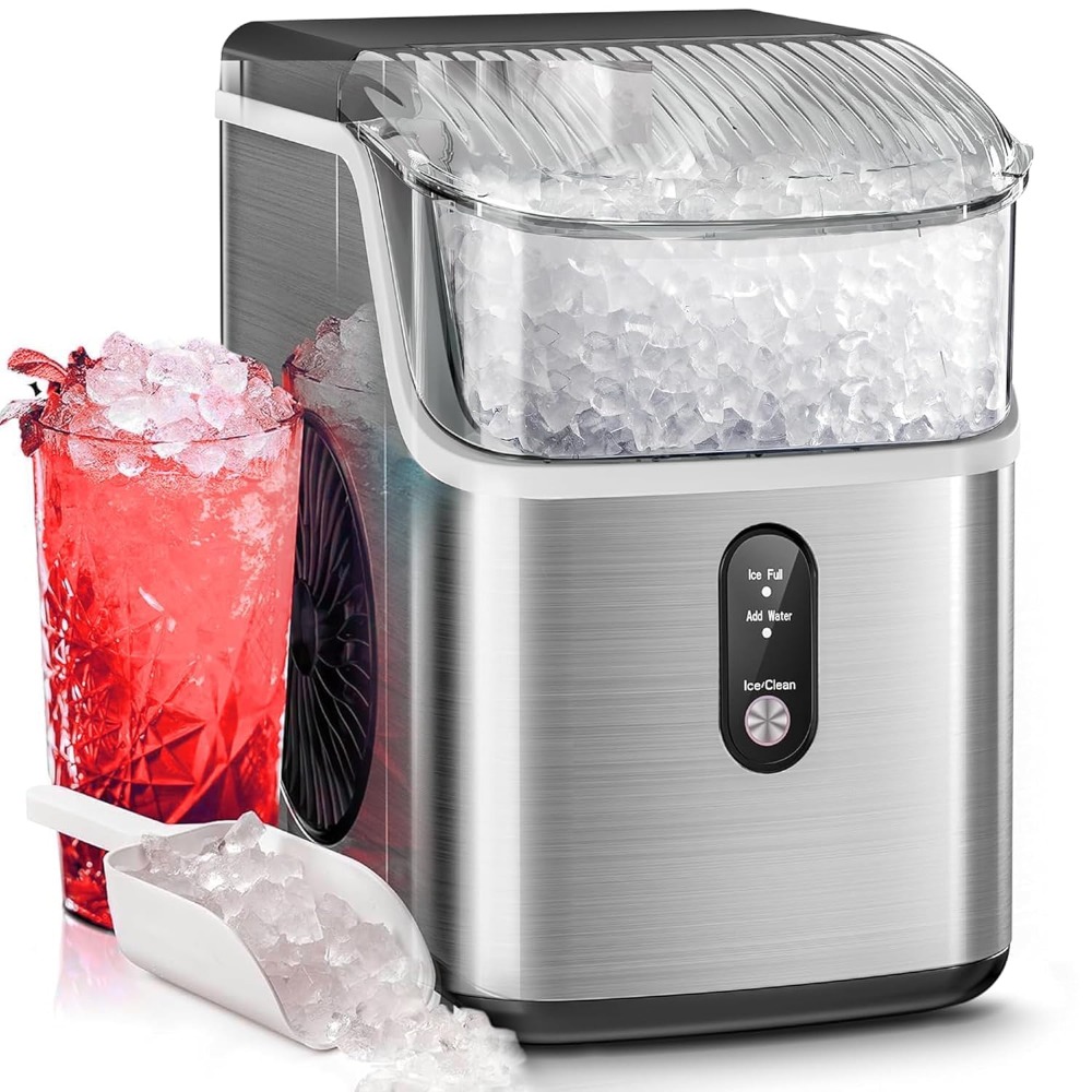 - 【Savor Chewable Nugget Ice】This soft, pebble-like ice enhances every sip, adding a touch of luxury to your drinks. Enjoy quicker chilling with the larger surface area of this delightful ice! Nugget ice, with its slow melt and chewable texture, is the ultimate ice for drinks.