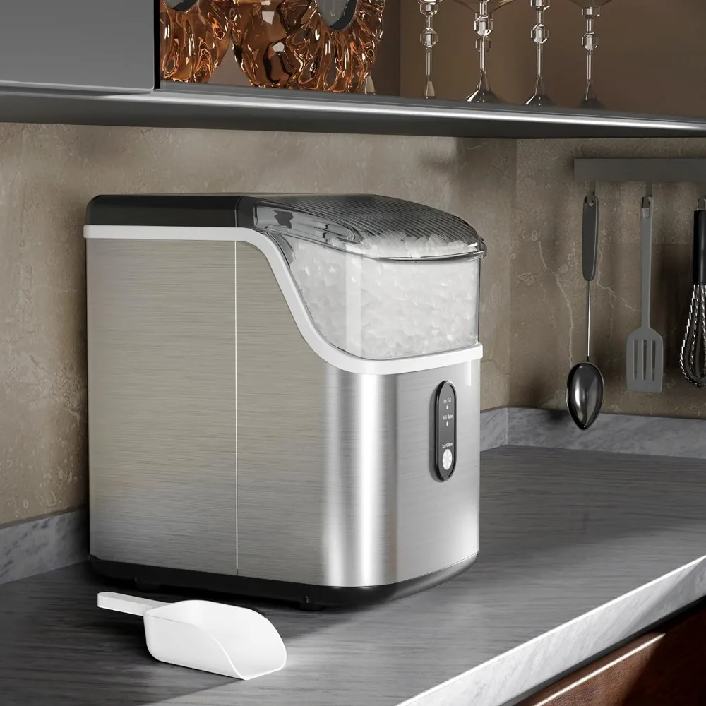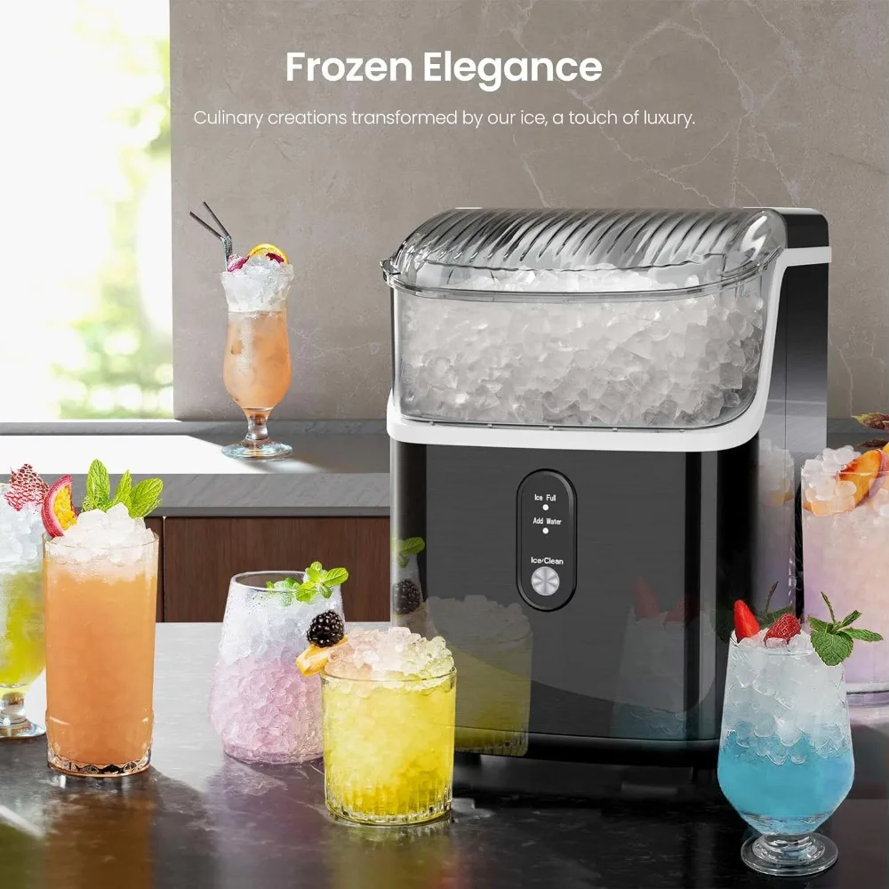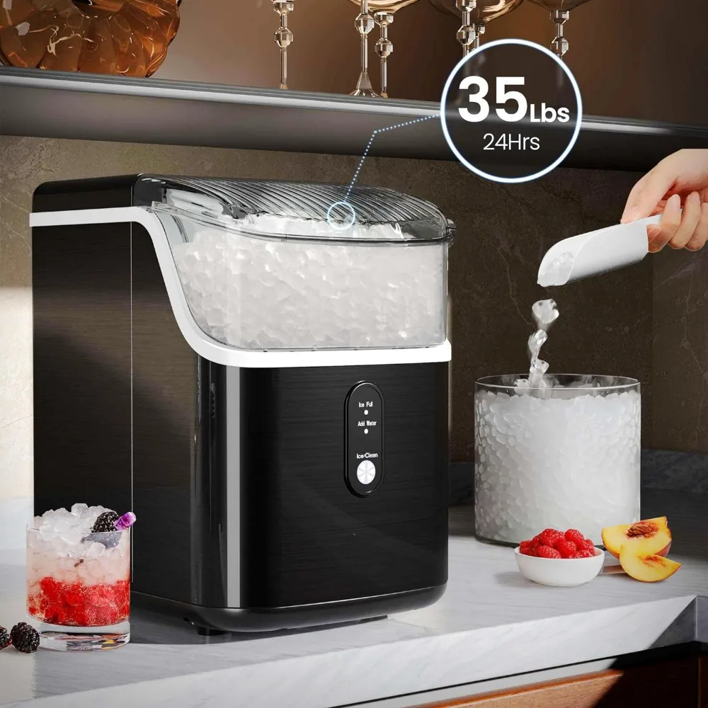 - 【Efficiency RedFined】Elveate your ice game with our state-of-the-art Nugget ice maker machine.It churns out 35 pounds of ice daily, equivalent to a whopping 135 cups of ice cubes. it ensures your drinks are always perfectly chilled. In just a short 6 minutes, Our countertop ice maker machine continuously churns out ice cubes.