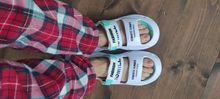 The product is good, arrived quickly, about 15 days, the thickness of the sole is good, the stroke is soft, a little creep. On my 43, there are 44-45 of them. Let's hope the rubber bands don't fly off soon
