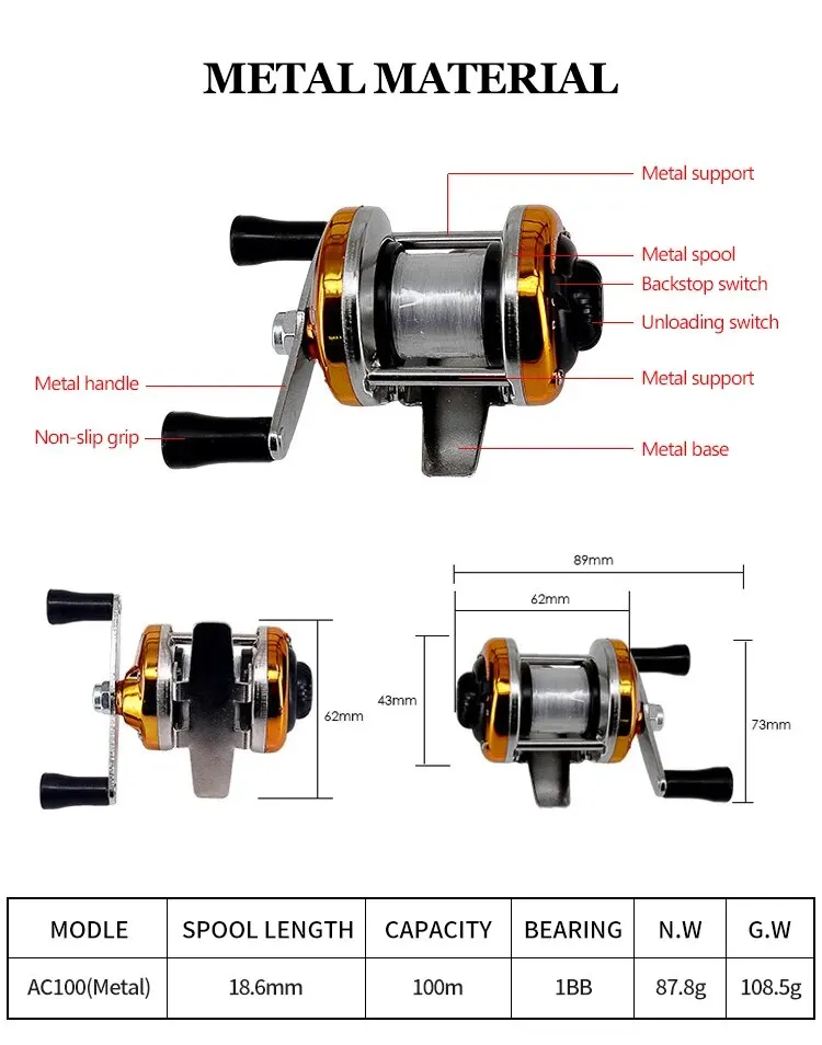 • Metal Main Body :The metal main body ensures durability and longevity, making it a reliable choice for ice fishing.
