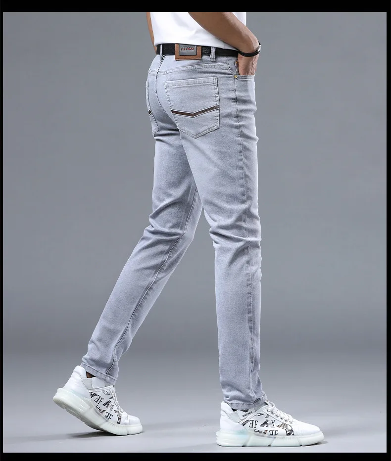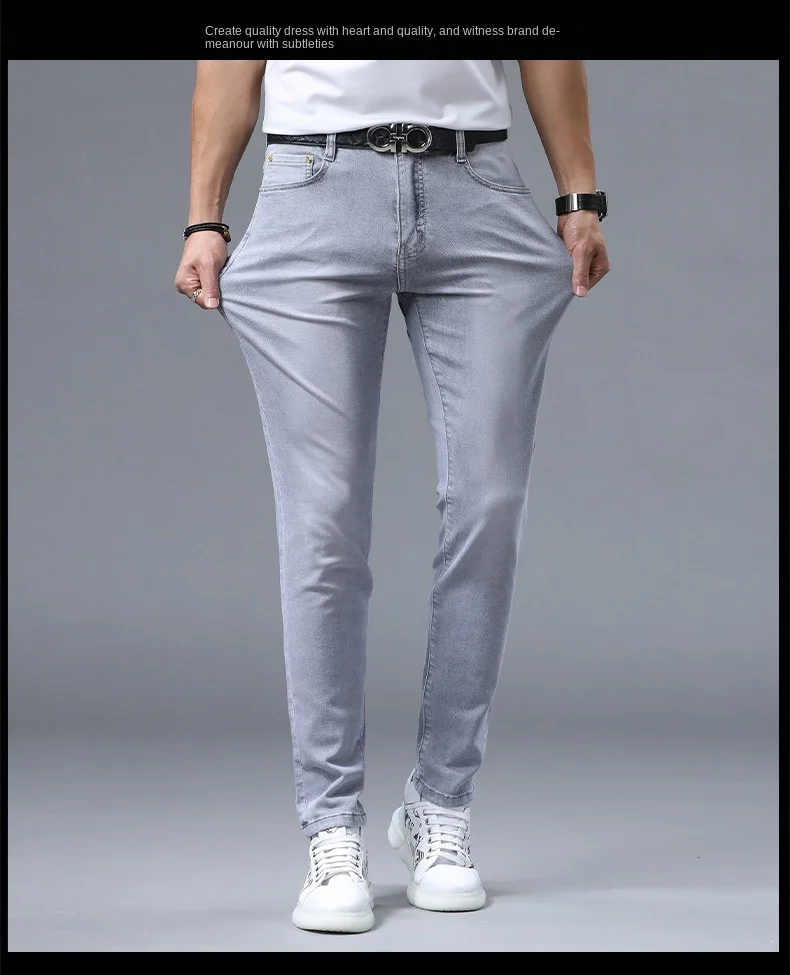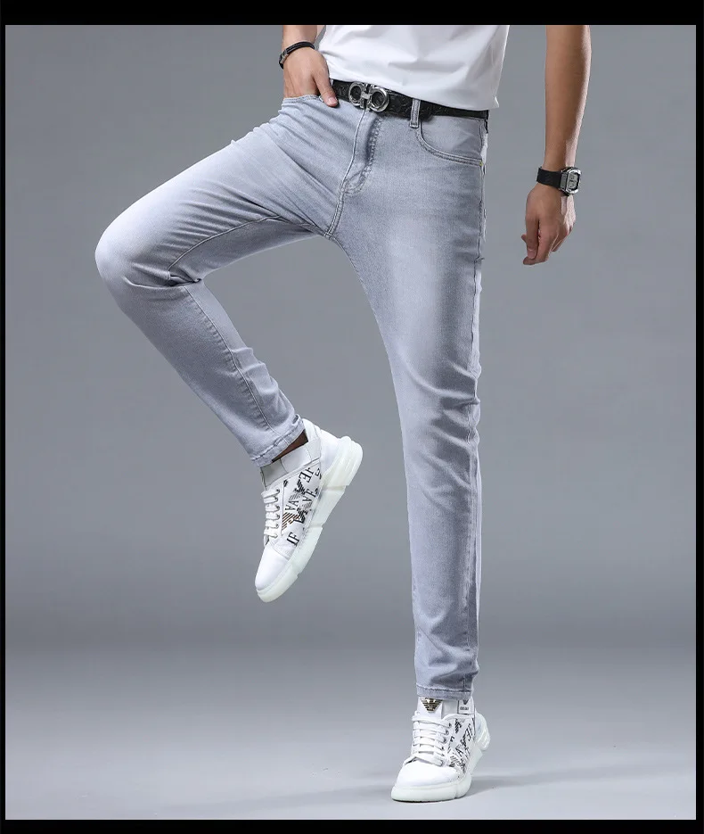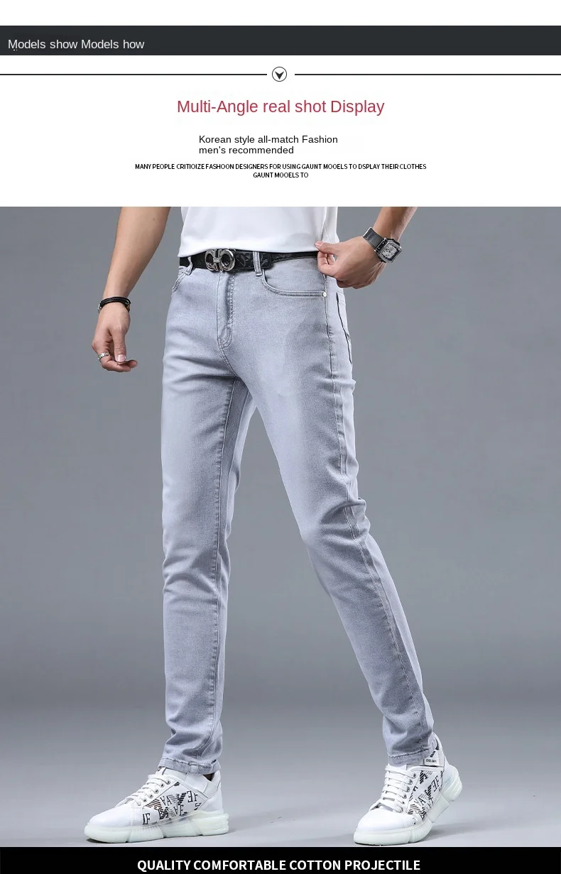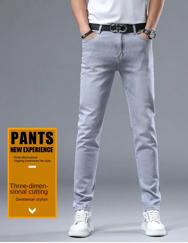 2024 Spring New Light Gray Jeans Men’s Simplicity Slim Fit Skinny Light Luxury Fashion Elastic All-Matching Casual Trousers
