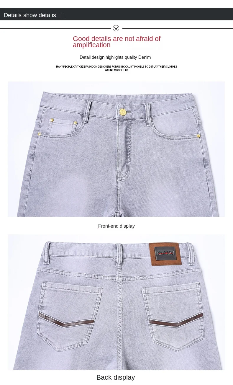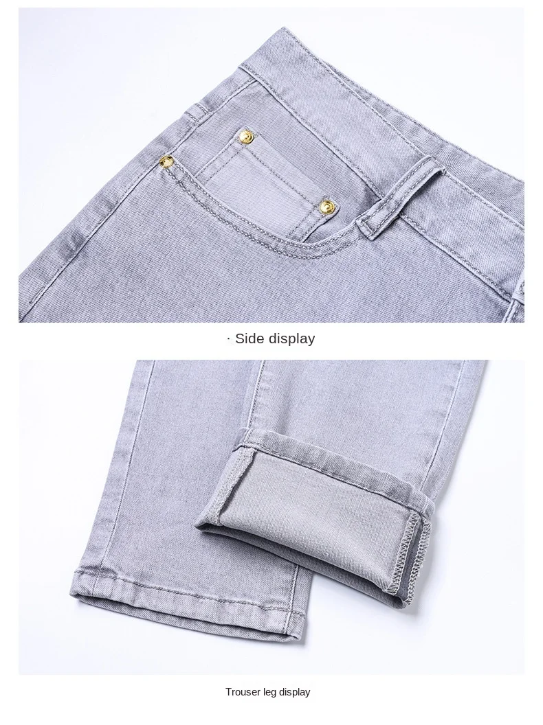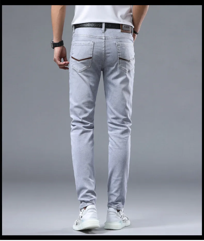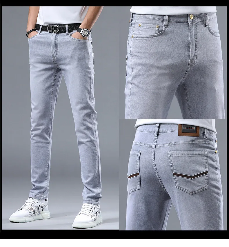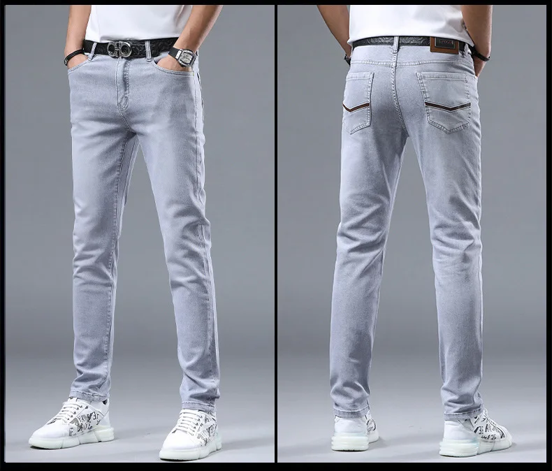 2024 Spring New Light Gray Jeans Men’s Simplicity Slim Fit Skinny Light Luxury Fashion Elastic All-Matching Casual Trousers