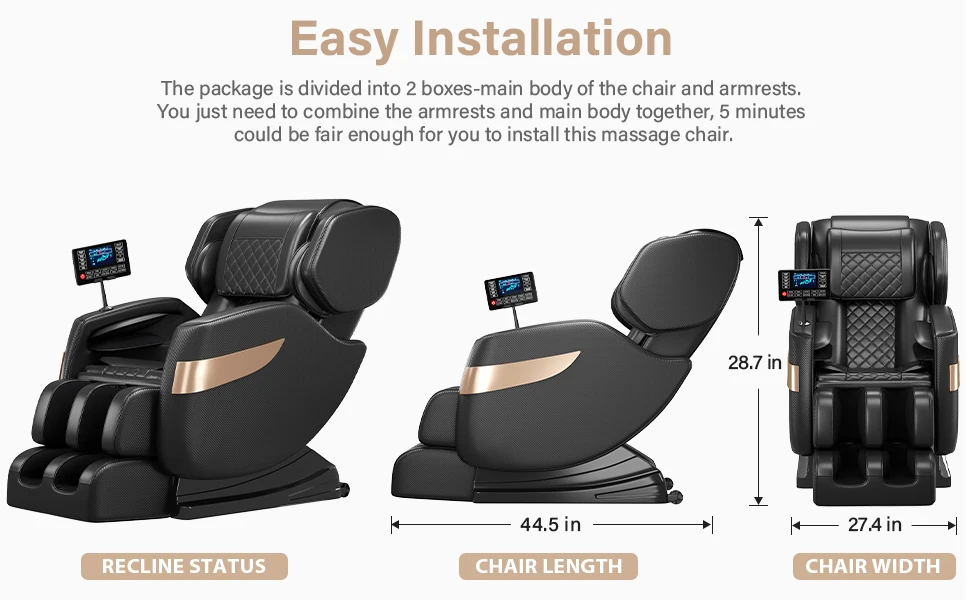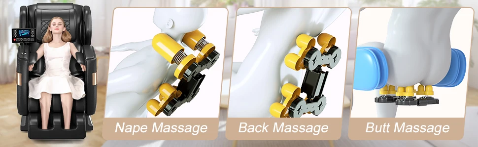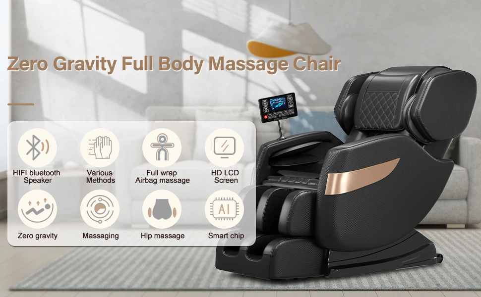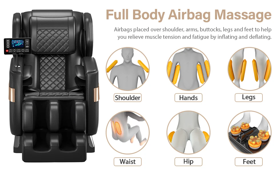 zero gravity, full-body airbag, back and foot roller massage, lower back heating.