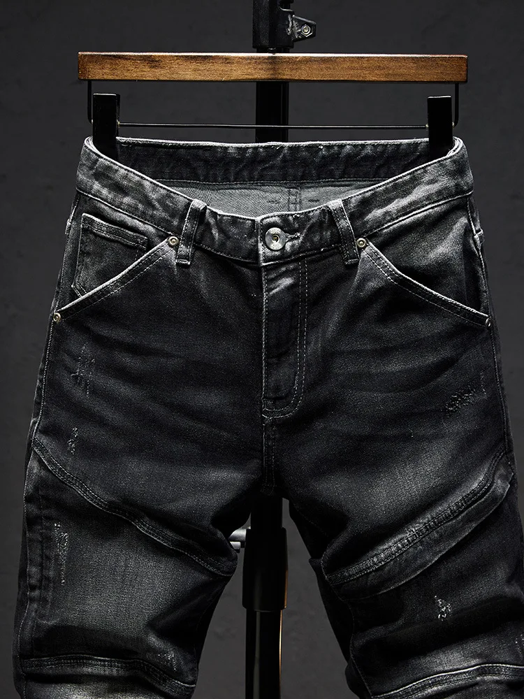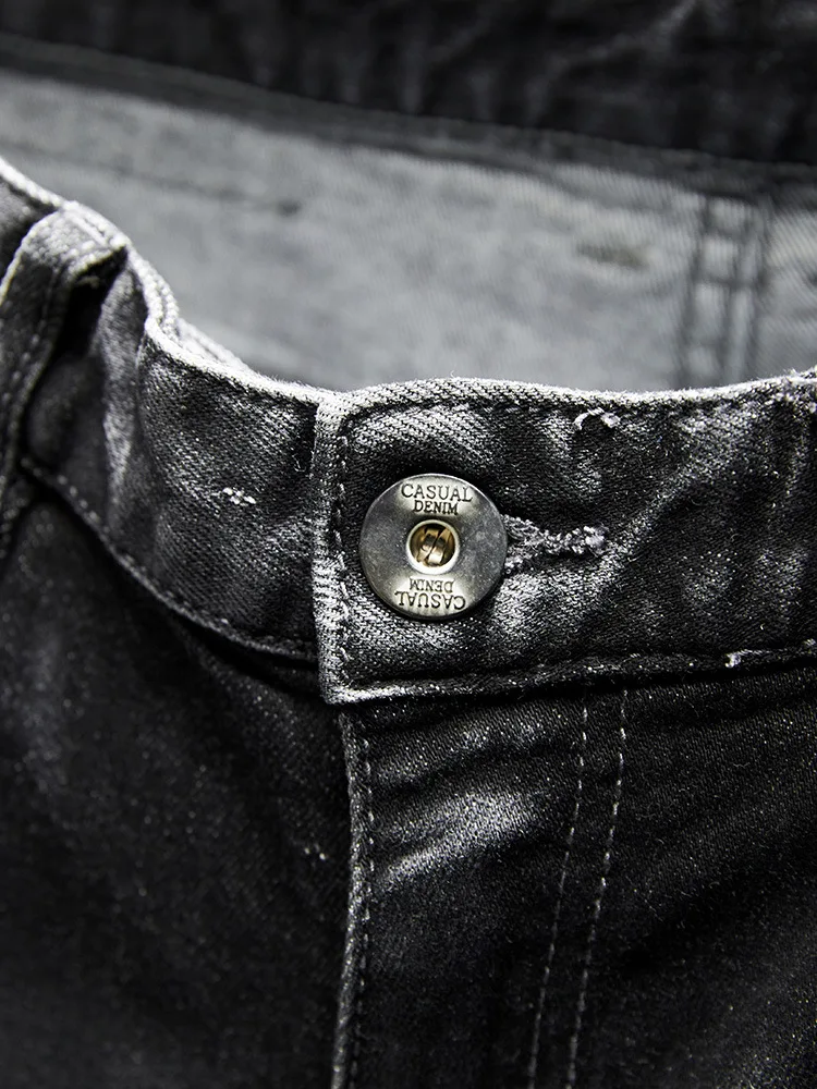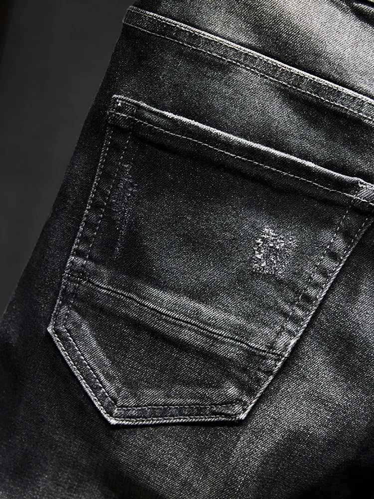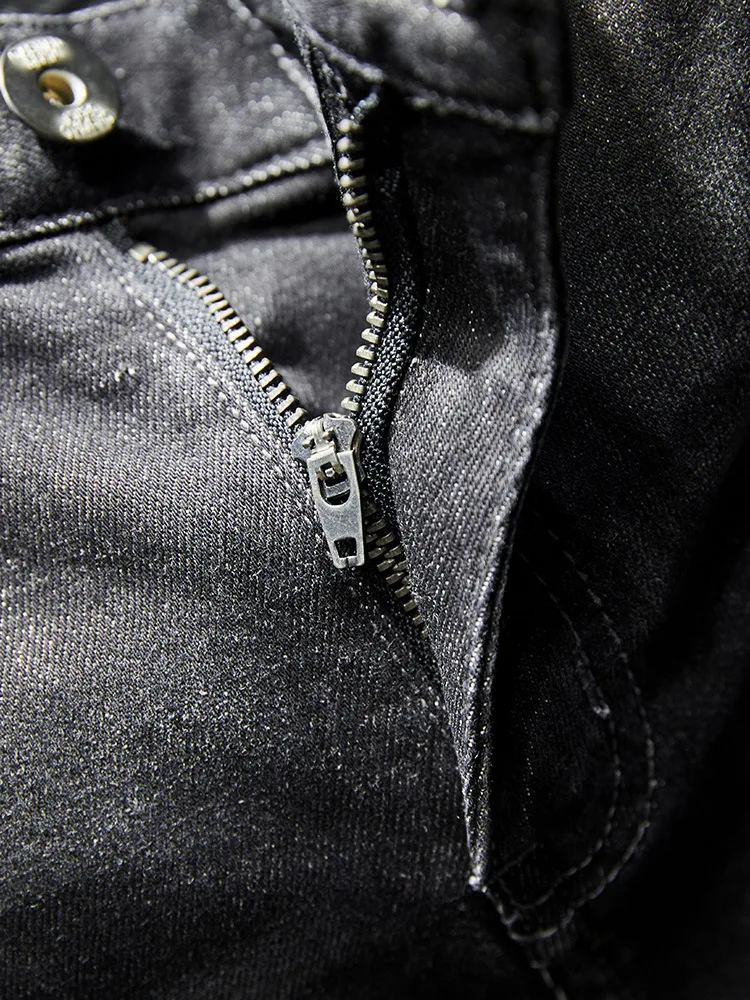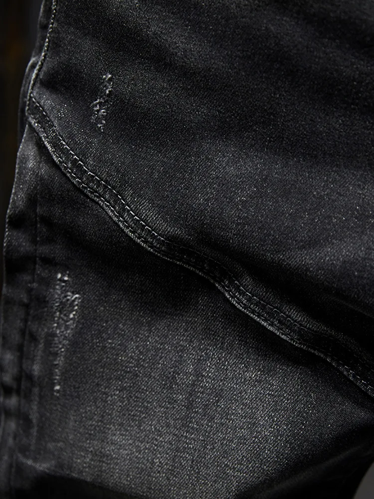 2024Autumn Men’s Black Jeans High Quality American Zipper Stitching Stretch Slim Street Fashion Haulage Motor Trousers