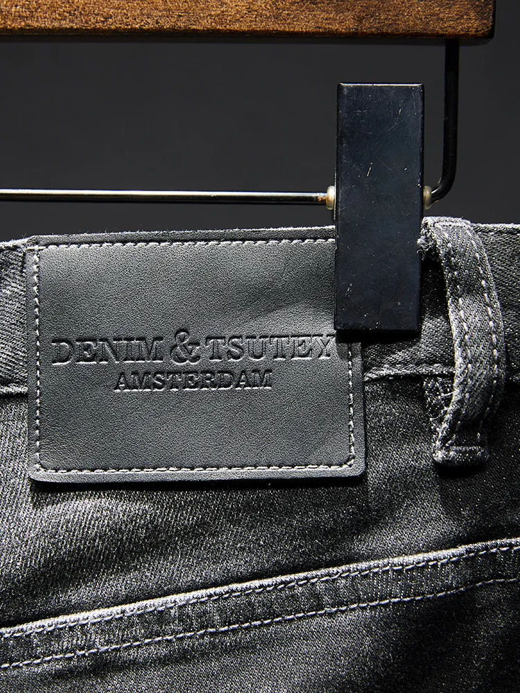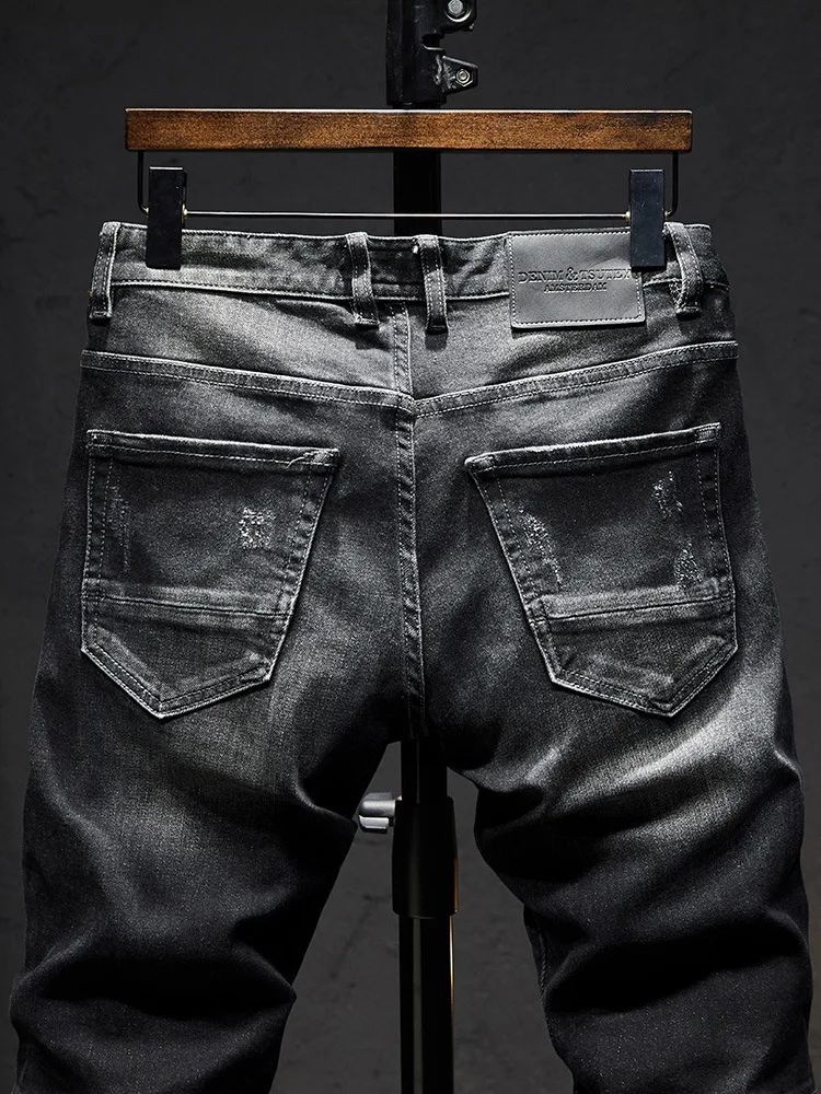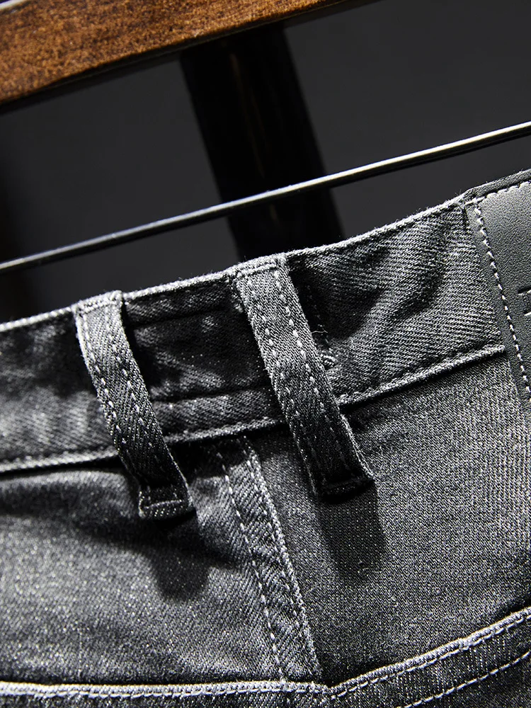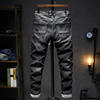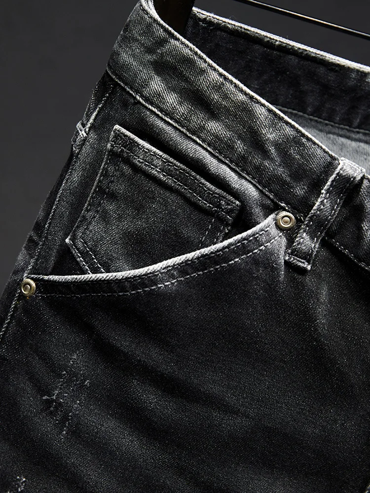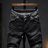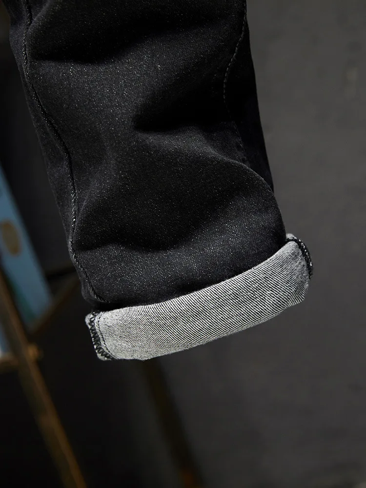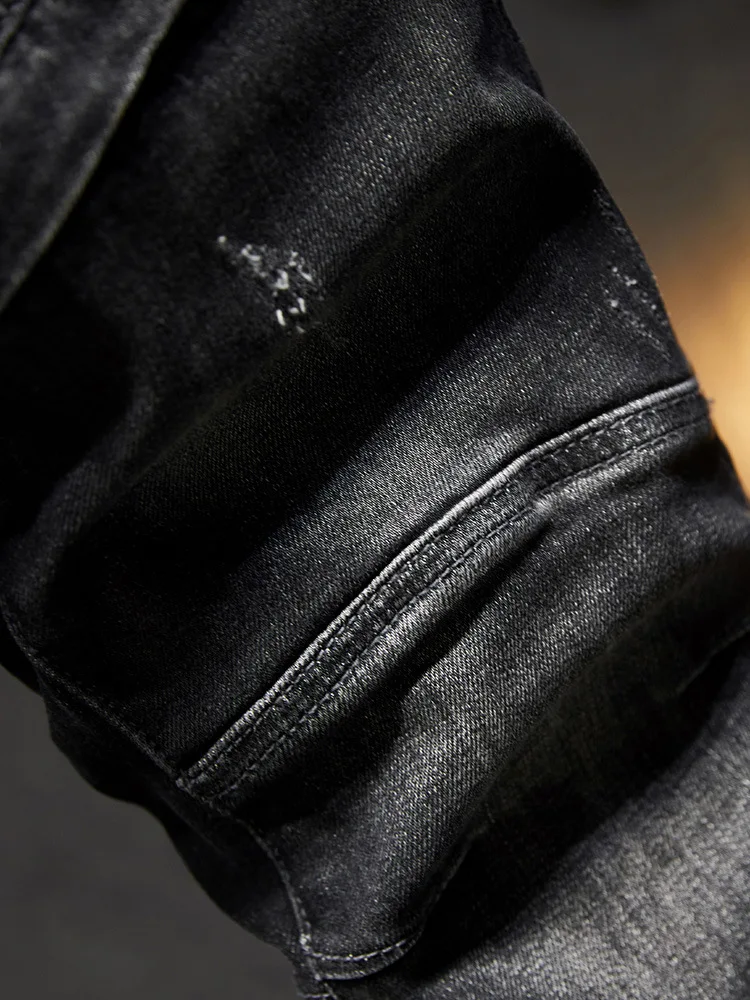2024Autumn Men’s Black Jeans High Quality American Zipper Stitching Stretch Slim Street Fashion Haulage Motor Trousers