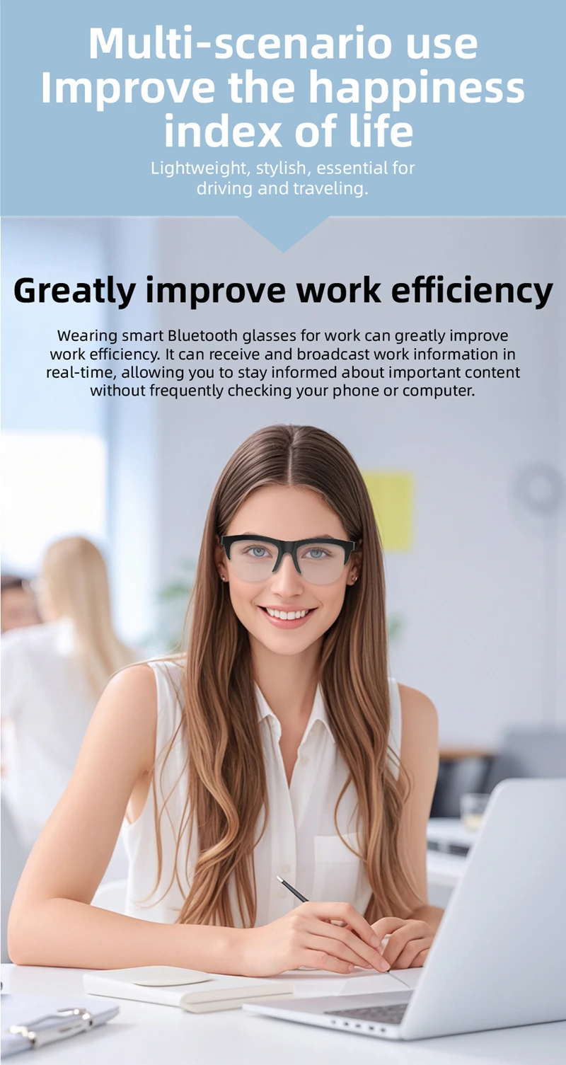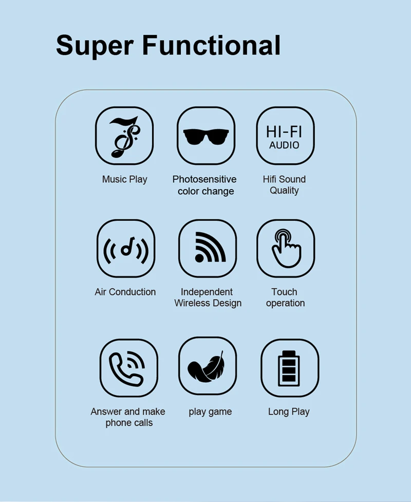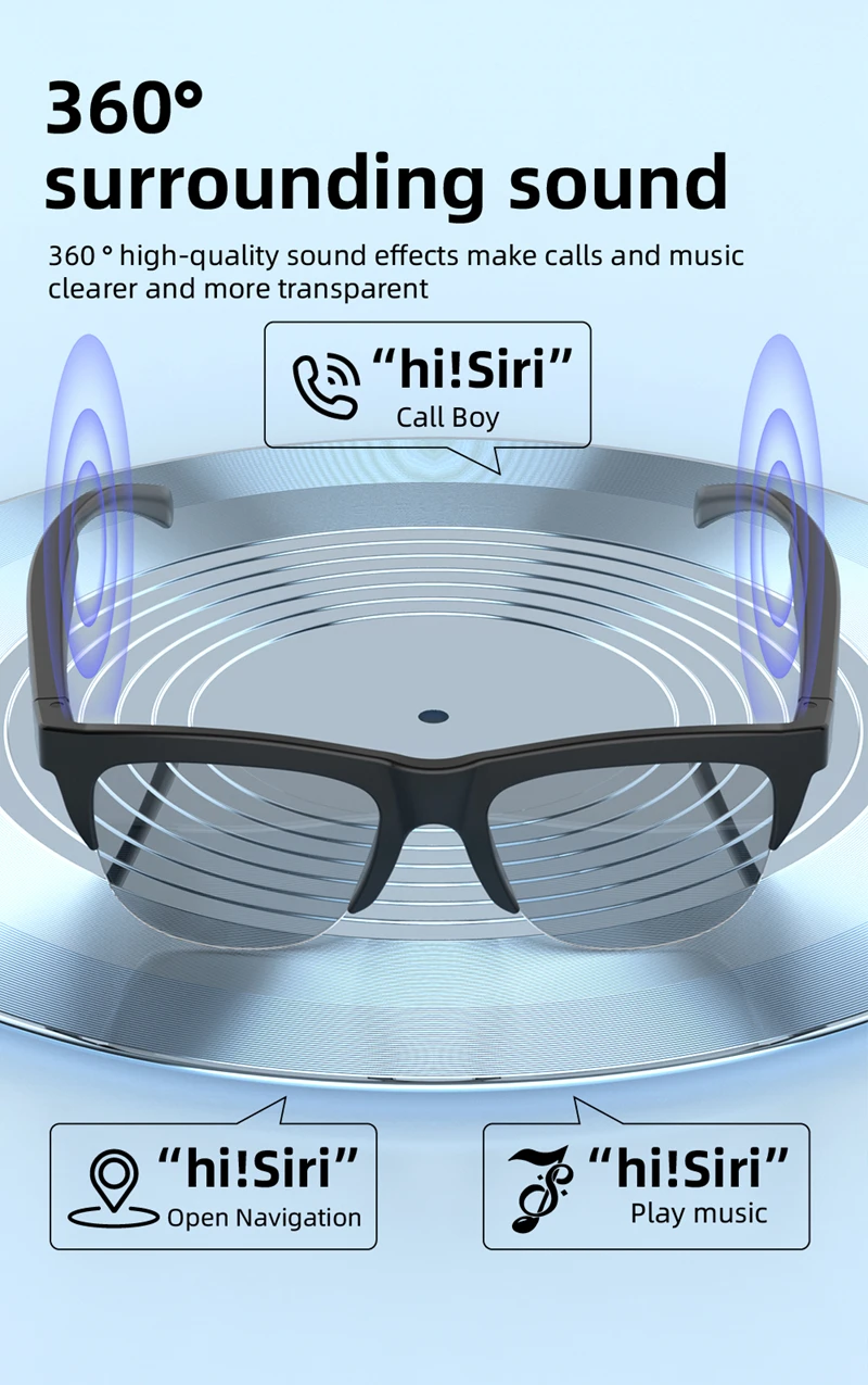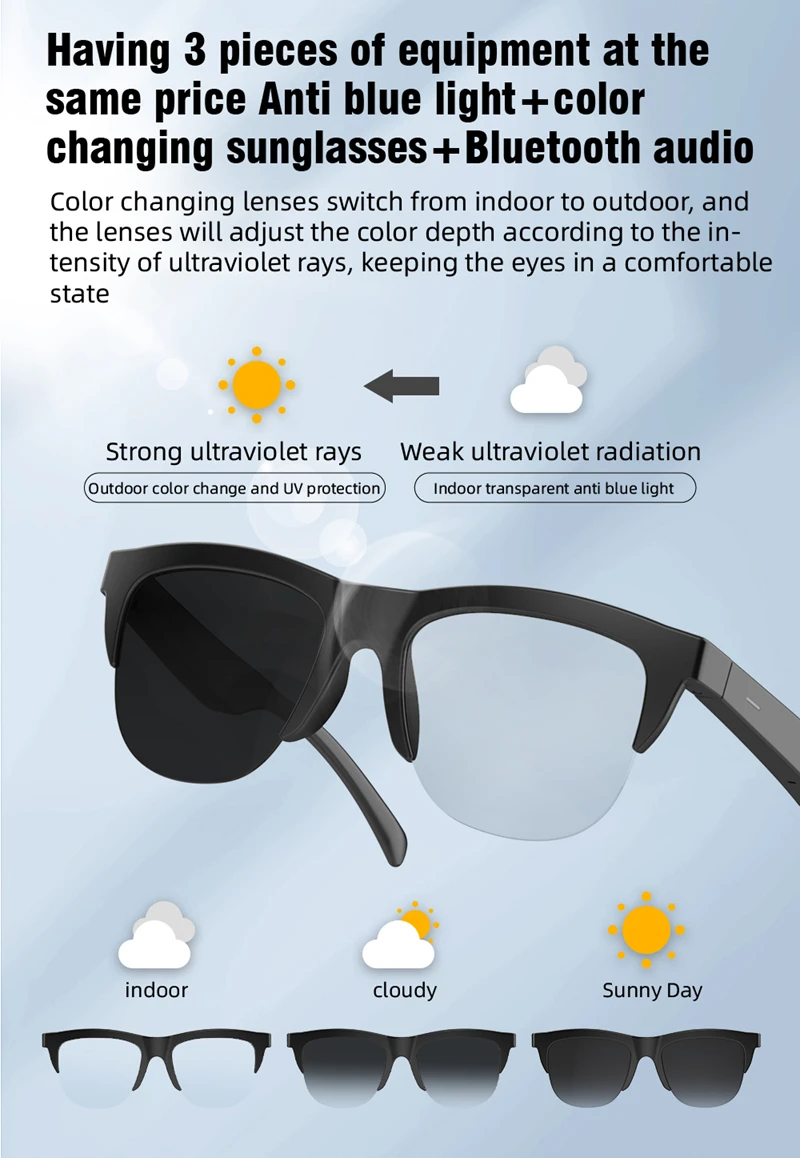 2025 New Smart Bluetooth Audio Glasses – Photochromic Lenses Built-in HD Speakers for Music/Calls Wireless Sunglasses