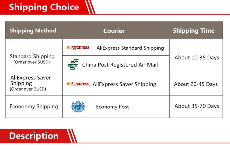 Packages from our warehouse in China will be shipped by ePacket or EMS depending on the weight and size of the product. Packages shipped from our US warehouse are shipped through USPS.