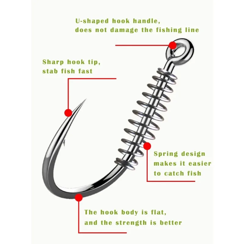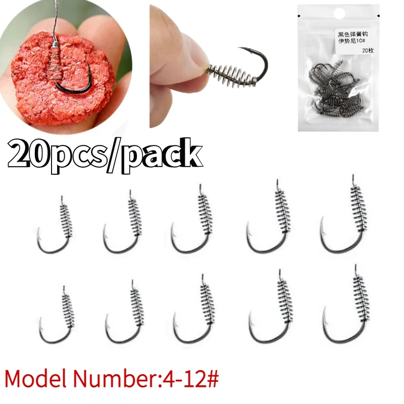 20pcs/lot Fishing Spring Swivel Hook Size 4-12# Stainless Steel Barbed Explosion Carp Hooks Single Circle Fishinhook with Hole