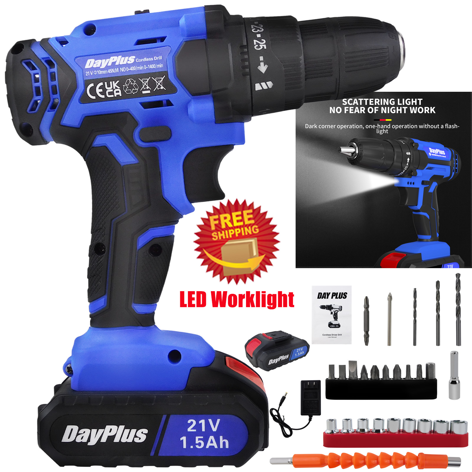 【Multifunction Power Tool】 The 21V cordless drill set is supplied with a powerful Li-ion battery,provide super continuous working power, and each battery has been tested thousands of times, so you don’t have to worry about battery life. It is a power tool that is very suitable for professionals and DIY enthusiasts.