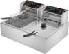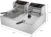 Dual tank design with separate control for each side makes it possible to fry different food simultaneously.
