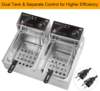 ROVSUN electric deep fryer, with knobs for temperature control, is easy to operate. And with detachable oil tank and fryer control with heating element, it is easy to clean. Besides, the oil tank is designed with handles, which makes it more convenient for you to take out the oil tank. What’s more, its dual tank design and separate control and plug for each side allow it to fry different food at the same time. Ideal for making various fried food, such as French fries, fried shrimps, onion rings, fried chicken, etc.