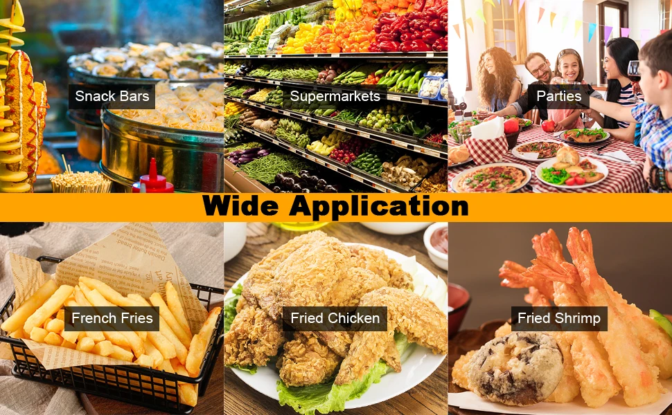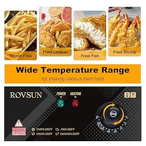 Temperature can be set simply by turning the control knob. And the temperature can be adjusted for frying different kinds of food.