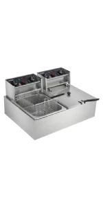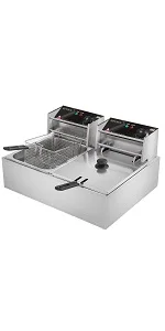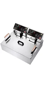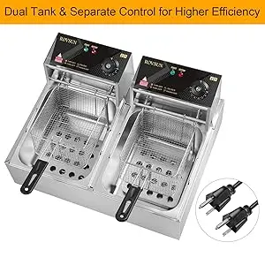 ROVSUN electric deep fryer, with knobs for temperature control, is easy to operate. And with detachable oil tank and fryer control with heating element, it is easy to clean. Besides, the oil tank is designed with handles, which makes it more convenient for you to take out the oil tank. What’s more, its dual tank design and separate control and plug for each side allow it to fry different food at the same time. Ideal for making various fried food, such as French fries, fried shrimps, onion rings, fried chicken, etc.
