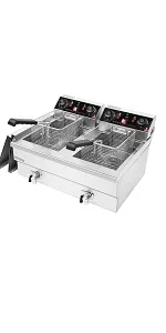 Dual tank design with separate control for each side makes it possible to fry different food simultaneously.