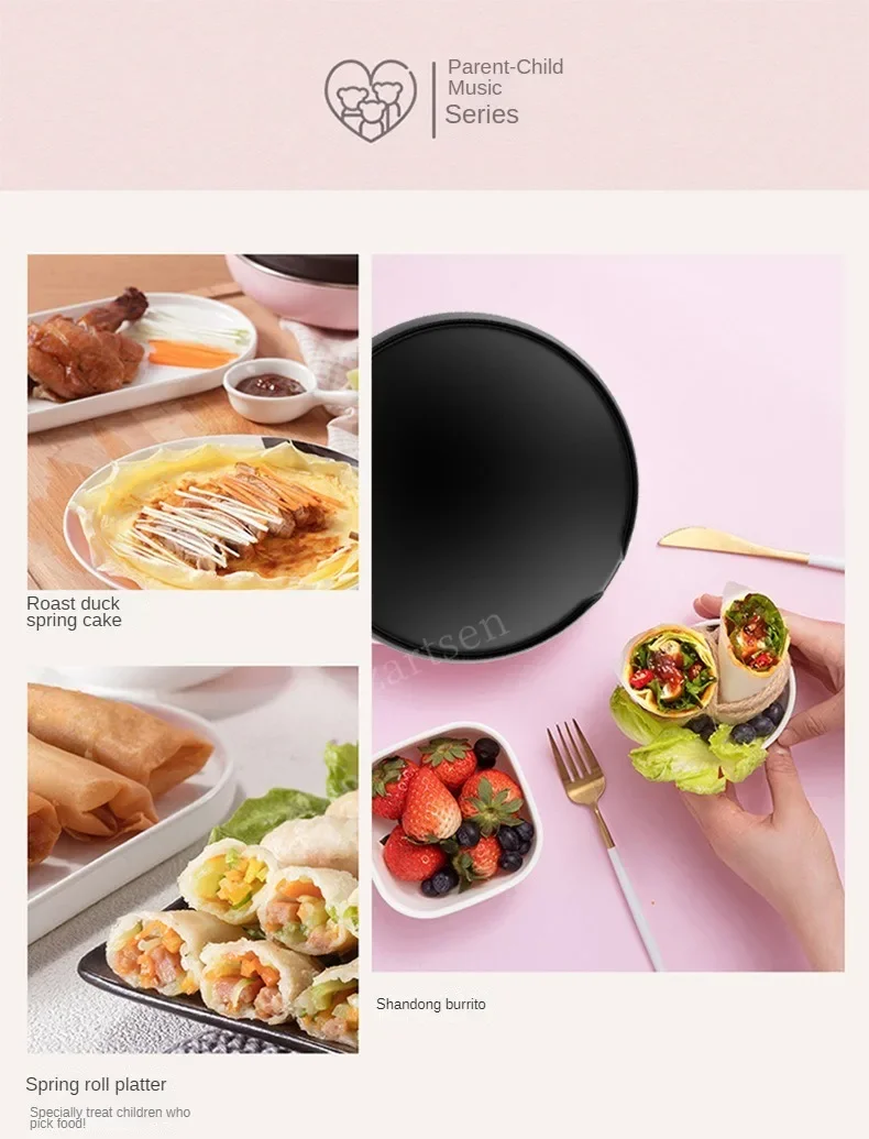 220V Electric Crepe Maker Breakfast Pizza Baker Pancake Baking Pan Non-stick Griddle Chinese Spring Roll Cooking Pan