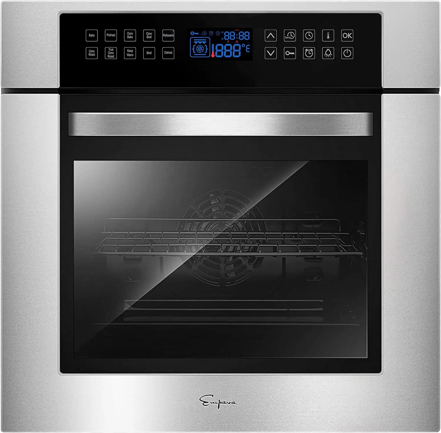 - Product 1: MULTI-FUNCTIONAL – With 10 different functions available, including Rotisserie, preheat, bake, roast, convection roast, broil, true convection broil, etc.. the Empava electric convection oven is sure to meet your needs.