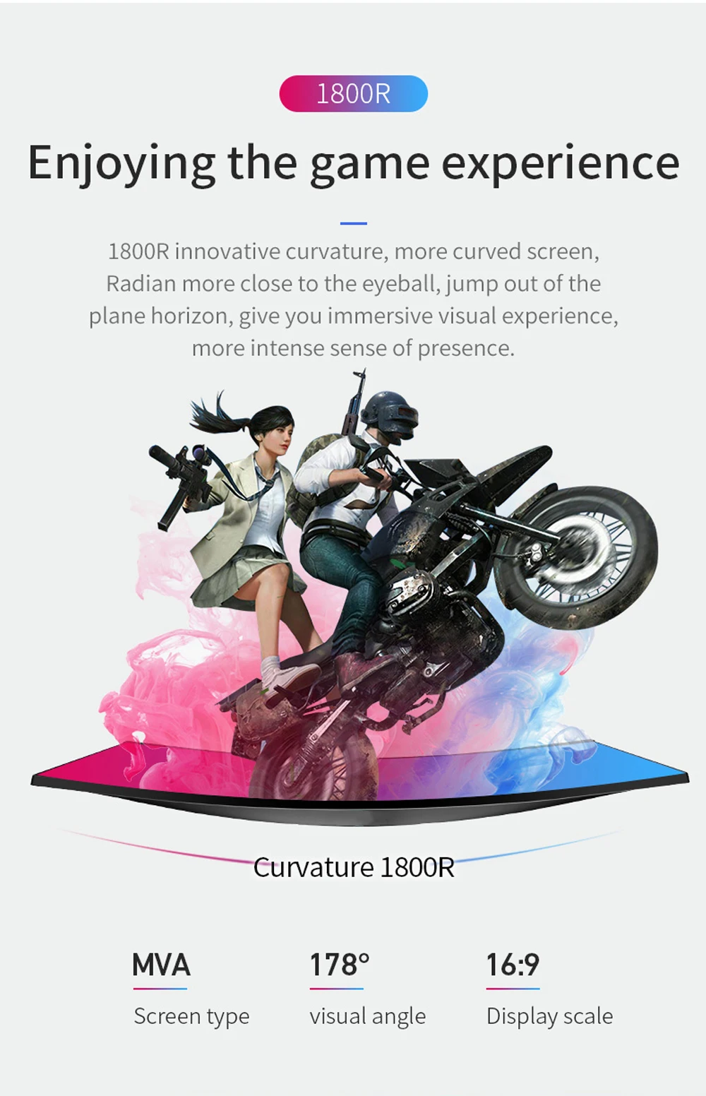 24 inch Curved 75Hz Monitor Gaming Game Competition 23.8″ MVA Computer Display Screen Full Hdd input 2ms Respons HDMI/VGA
