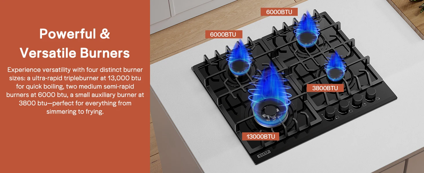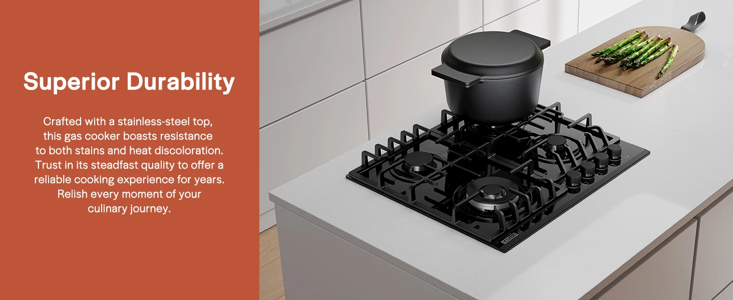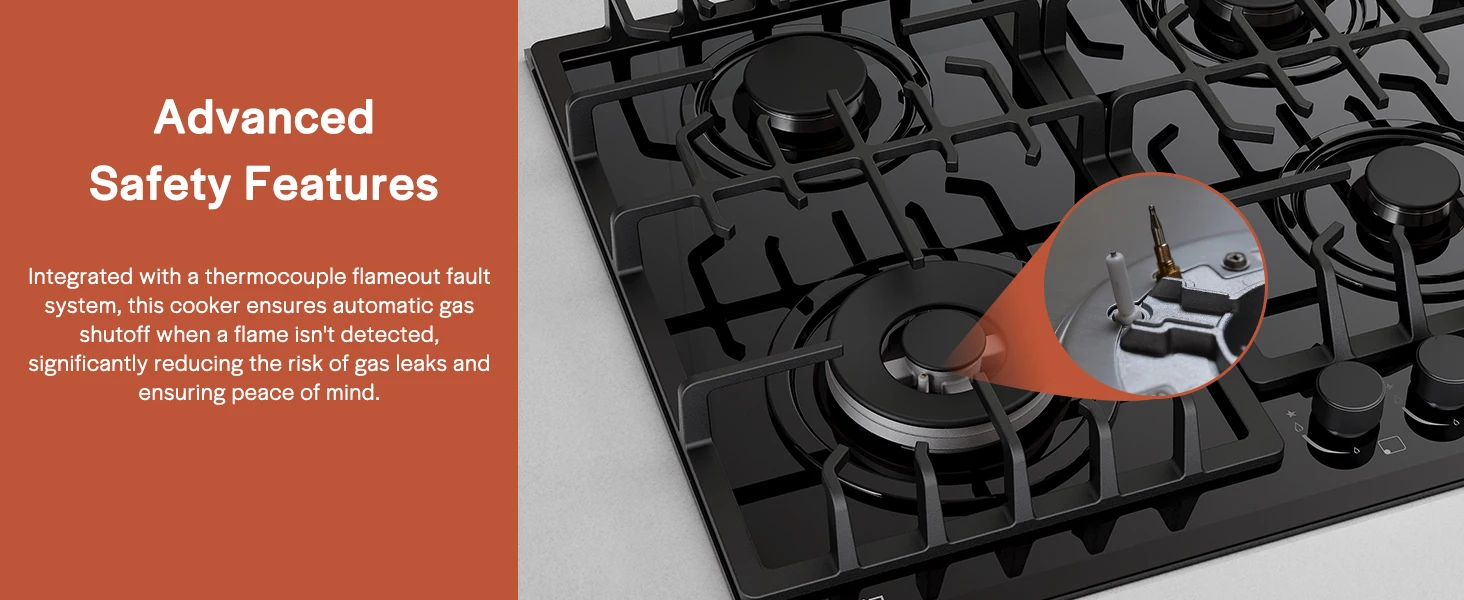 Dishwasher-safe knobs and heavy cast iron grates ensure easy, hassle-free cleaning. Keep your cooktop effortlessly pristine.