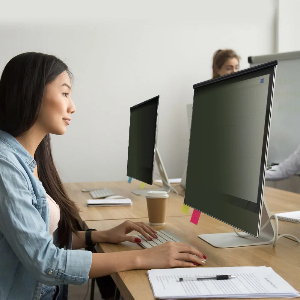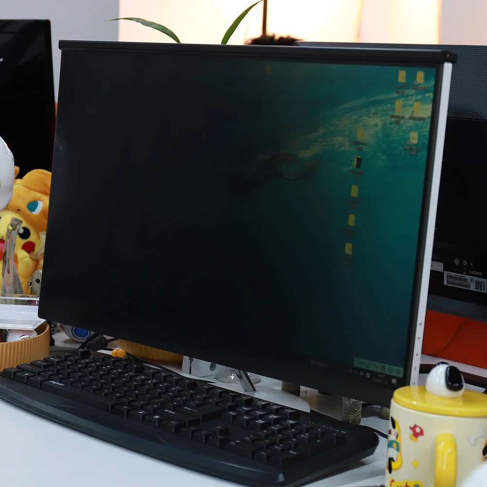Feature: 1. Enhanced Privacy: Safeguard your data with the computer privacy screen filter. This filter ensures that screen information is visible only to the person directly in front of the monitor, appearing dark from side angles (30° to 60°). It uses multi-layered thick film and revolutionary microlouver technology for optimal privacy. 2. Perfect Fit: Designed for 24-inch widescreen monitors with a 16:9 aspect ratio, the protector film measures 20 15/16 inches in width and 11 13/16 inches in height (532mm x 299mm). Ideal for both office and everyday use. 3. Dual Functionality: The screen privacy filter not only protects your privacy but also shields your eyes by filtering out UV rays and reducing blue light. It effectively prevents computer-related eye strain and other potential harms like glaucoma. The filter is also anti-glare and scratch-resistant! 4. Easy Installation: The screen protector privacy filter features a hook-on installation method, making it extremely easy to attach and remove without any tools. You can conveniently choose when to use the privacy filter for your work. 5. Screen Protection: Crafted from high-quality materials, the privacy filter screen protector fits snugly on your computer screen, effectively preventing scratches, debris, and other damage to your monitor.