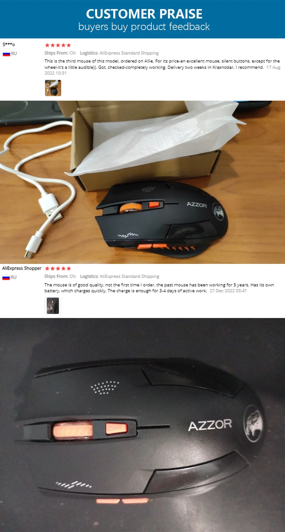 Mouse works perfectly Super packed really it's mega cool my rating on 6 and I recommend the purchase