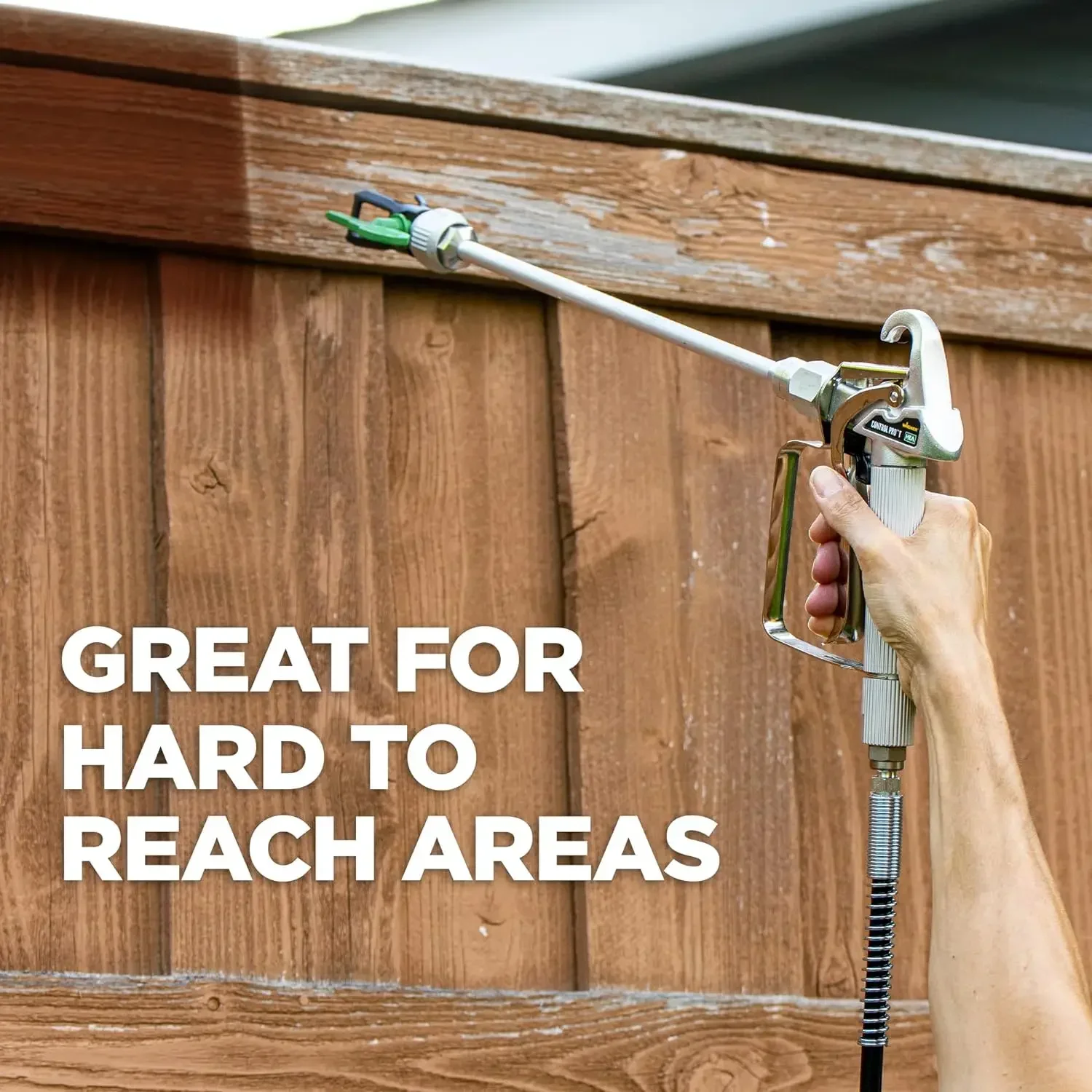 WAGNER AIRLESS PAINT SPRAYER: The Control Pro 130 Power Tank applies coatings 3X faster than a roller with low overspray. It’s perfect for painting the exterior of your home, staining a large deck, and more.Horsepower : 0.38, Power Requirement : 15 amp minimum circuit on 115 VAC,60 Hz current
