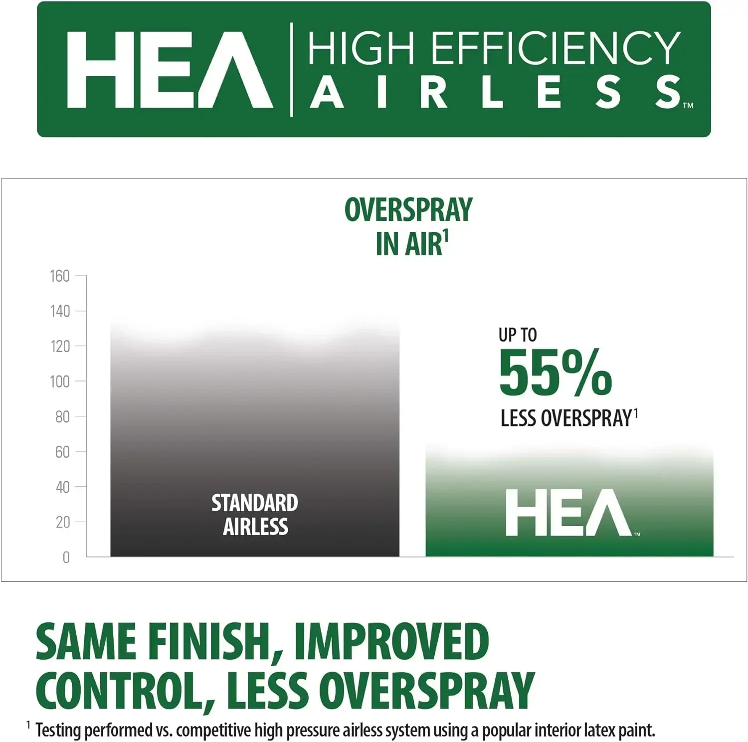 HIGH EFFICIENCY AIRLESS TECHNOLOGY: The paint sprayer features HEA technology that decreases overspray by up to 55% while delivering softer spray, improving control and providing a more-consistent finish