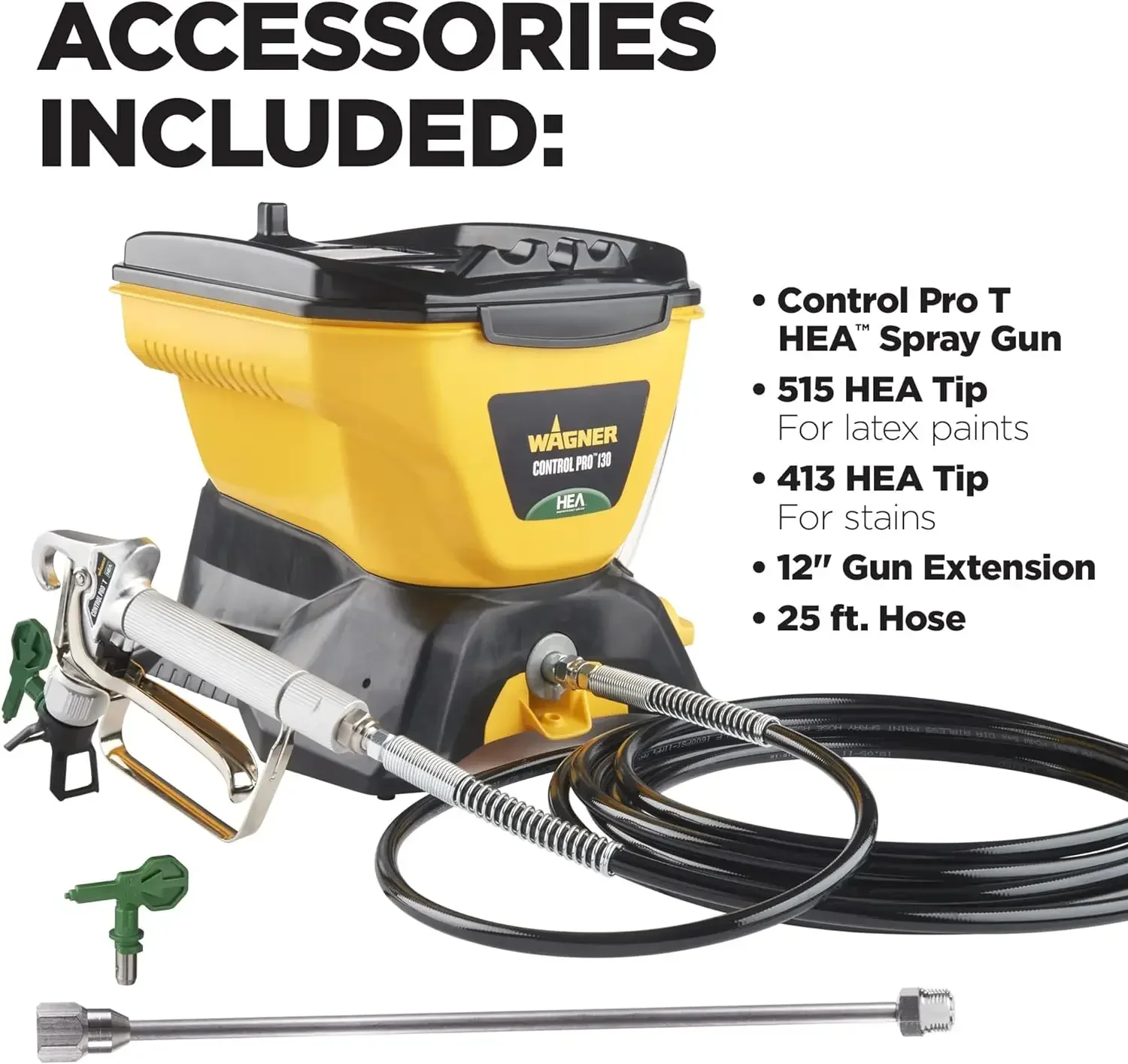 Wagner Spraytech 2422951 Control Pro 130 Paint Sprayer Kit, High Efficiency Airless Sprayer with Low Overspray & 12″ Extension, 515 & 413 Tip for Large Projects