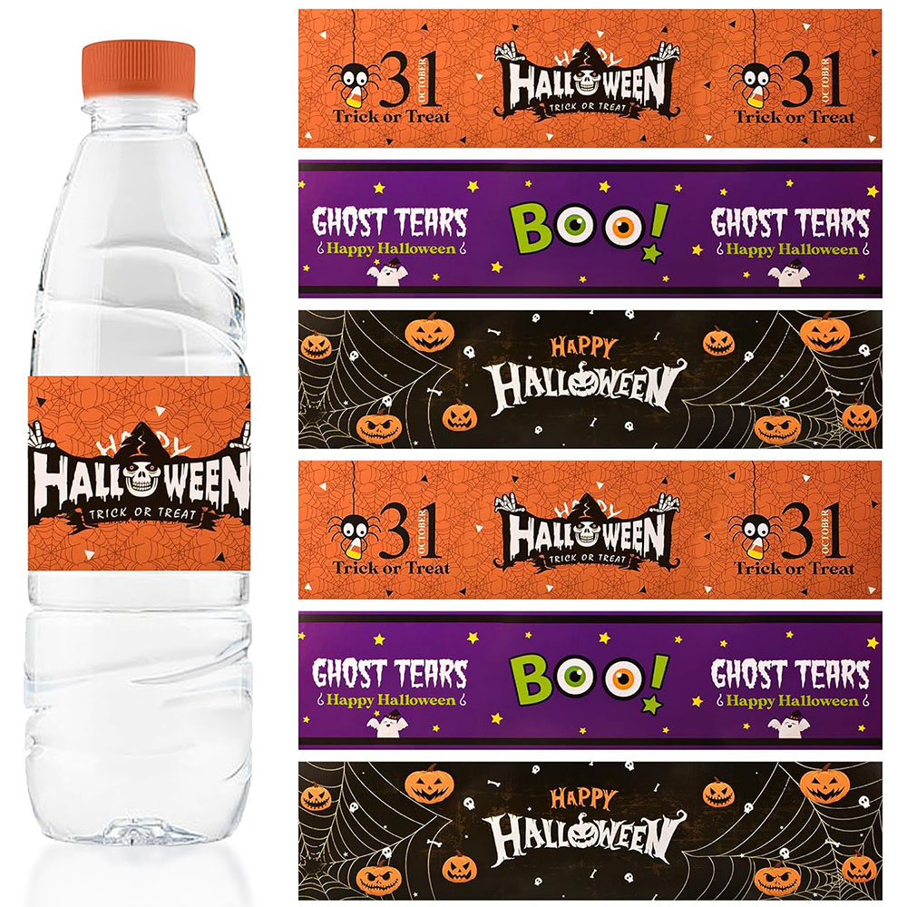 24pcs Halloween Water Bottle Labels Happy Halloween Boo Ghosts Waterproof Water Bottle Stickers Halloween Party Supplies