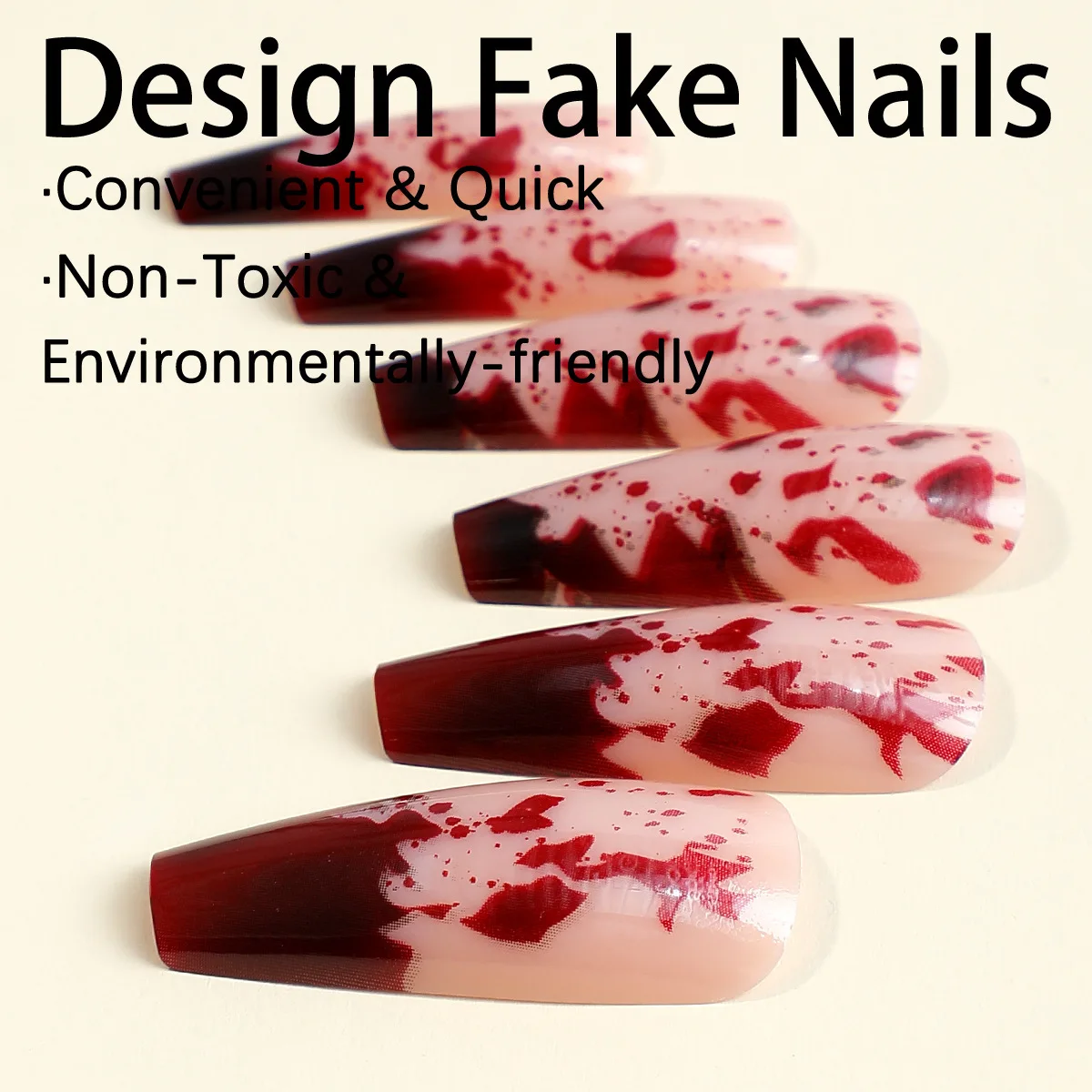 24pcs Long Coffin Shaped False Nails With Bloodstain Design For Halloween Theme, With Nail File And Double-Sided Tape Press On