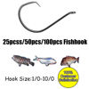 100/50/25pcs 7385 Octopus Series Fishing Hooks Carbon Steel Single Circle Fishhook 2X Strong Barbed Carp Hooks 1/0-10/0