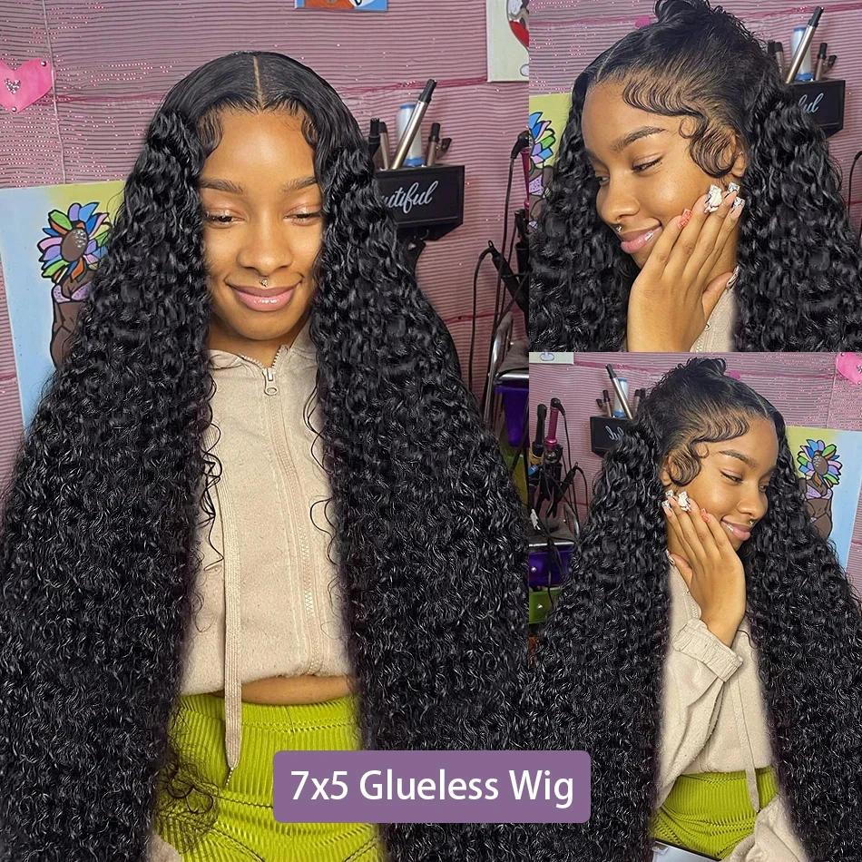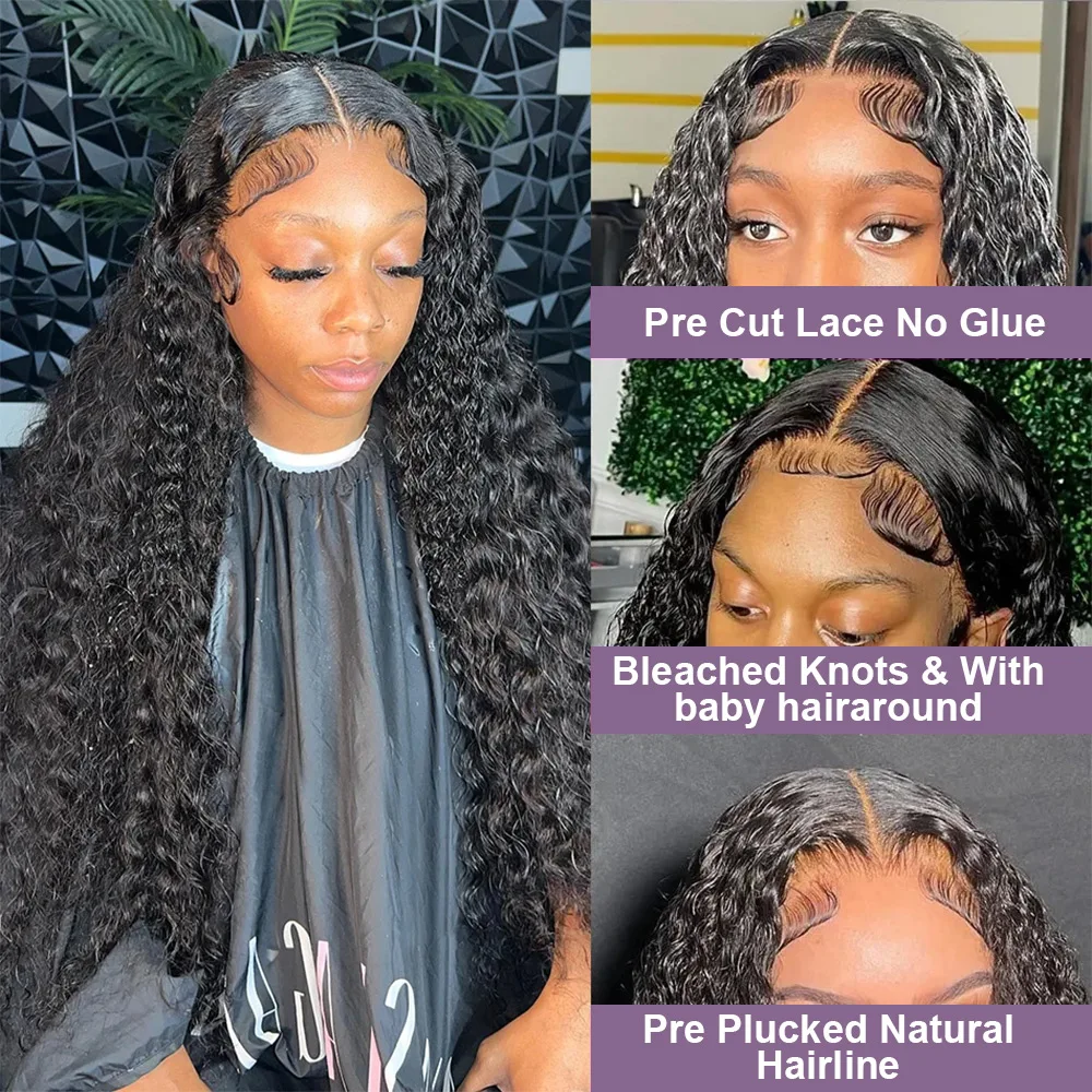 250 Density 36 Inches 7×5 13×4 Lace Frontal Deep Wave Wigs Brazilian Preplucked Curly Water Glueless Wigs Human Hair For Women