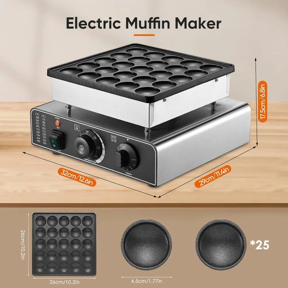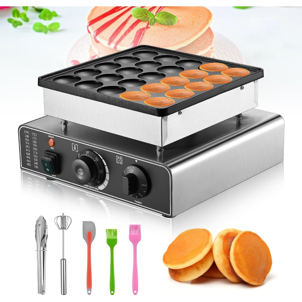 - 【Widely Used】Mini dutch pancakes maker is very suitable for making muffins and pancakes as desserts for breakfast or afternoon tea. It is a practical kitchen appliance. In addition to putting it at home, you can also consider putting it in your restaurants, convenience stores, cafes and snack bars.