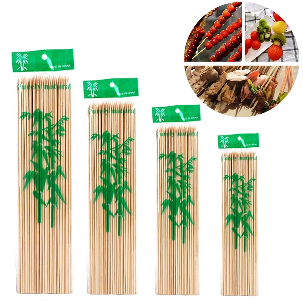 270-90Pcs Natural Bamboo BBQ Skewers Bamboo Sticks Disposable BBQ Kabob Skewers for Grilling Appetiser Barbecue 15/20/25/30cm
